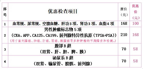 优惠男性体检项