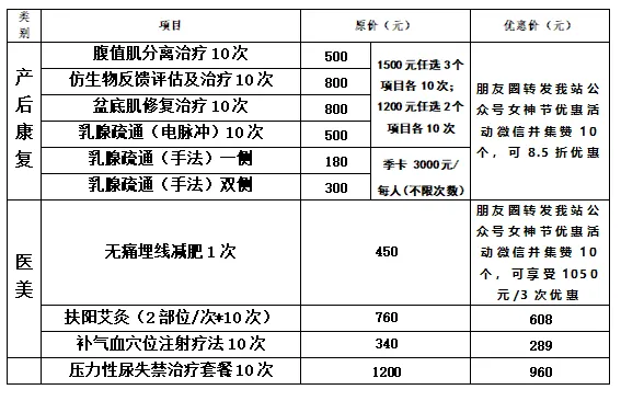 女神之约——天鹅社区卫生服务站体检、保健优惠套餐