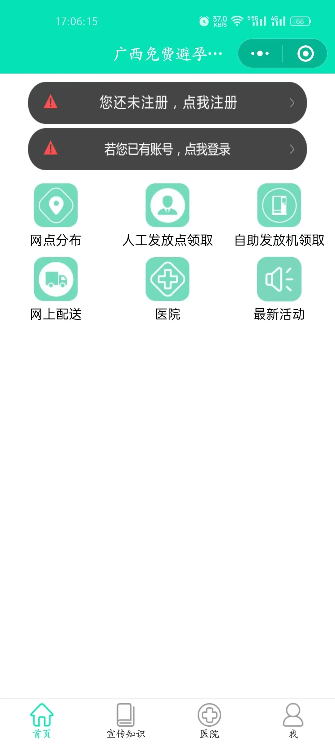 2.注册登录后,选择自助发放机领取”,扫描发放机上的二维码进入领取页面,选择领取避孕药具。
