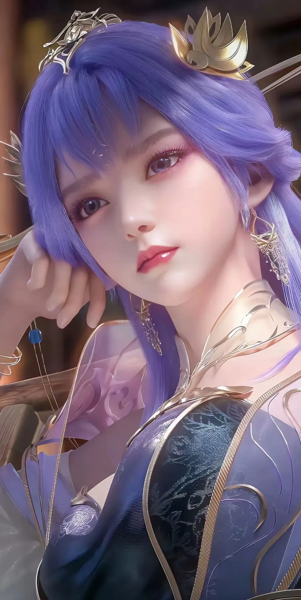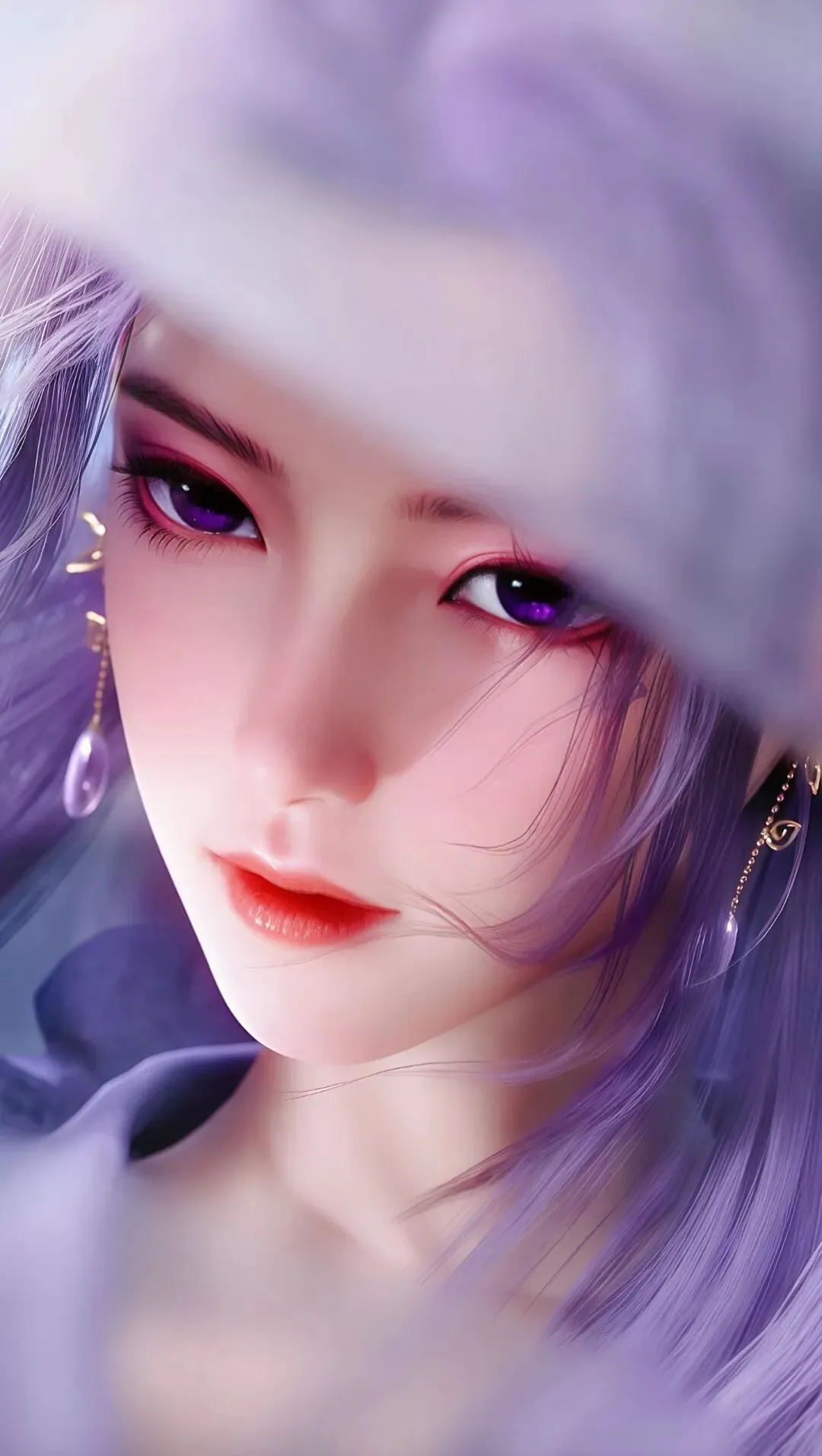 她的外貌堪称风华绝代,最具标志性的是那一头飘逸的紫色长发,发丝晶莹光亮,如紫色瀑布般垂落,为她平添几分神秘与高贵的气质。