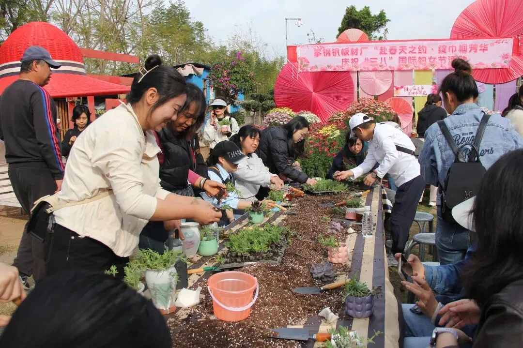 该厂工会组织60余名女职工代表开展“赴春天之约 绽巾帼芳华”主题活动,大家走进仁和区布德镇花千谷,在春日美景中放松身心。活动现场氛围轻松热烈,除了踏青赏景,工会还精心设置套圈互动、DIY多肉组盆体验项目,女职工们在工作人员指导下动手搭配绿植,创作专属盆栽。大家边动手边交流,既收获了生机盎然的绿植作品,也拉近了彼此距离。