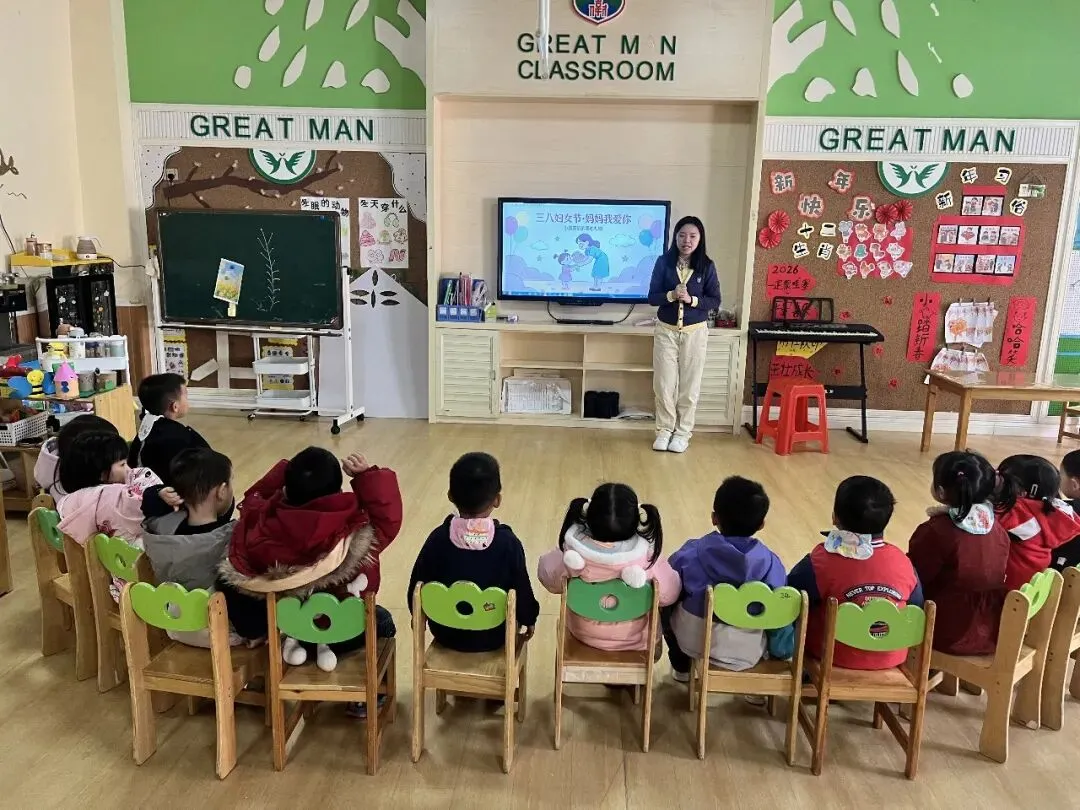 各班开启了妇女节主题教育课。老师们用生动的动画、温馨的绘本,向孩子们讲述妇女节的由来,细数生活中妈妈、奶奶、外婆们的付出:清晨忙碌的早餐、深夜温柔的陪伴、日常琐碎的操劳……