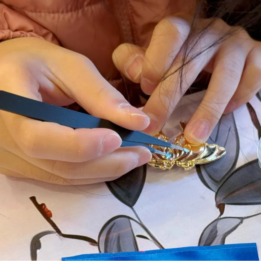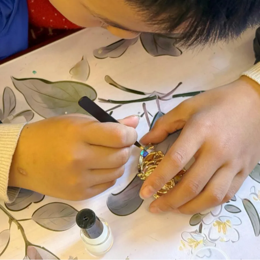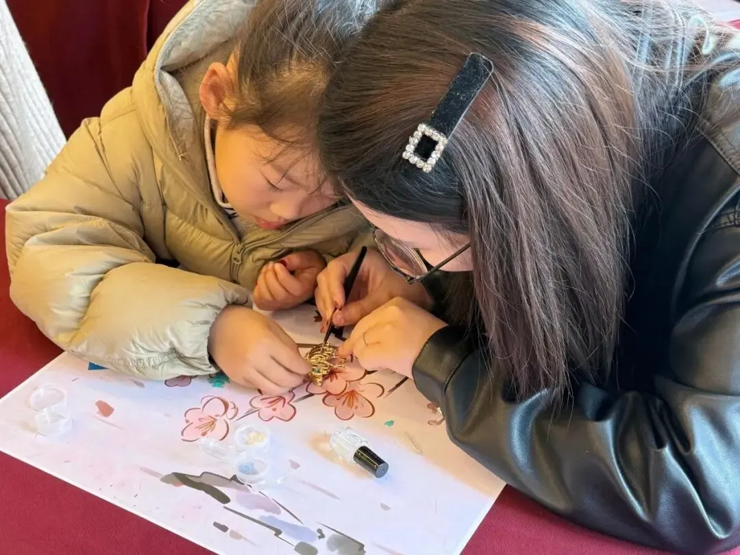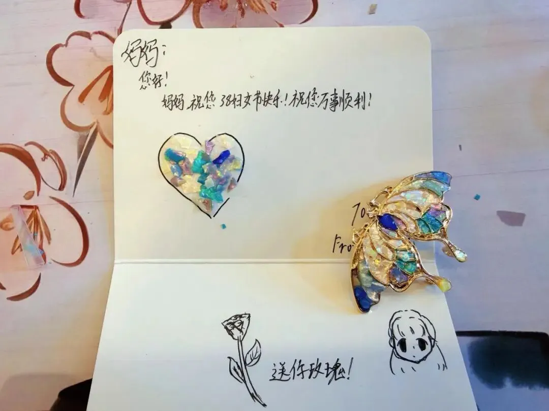 在创作过程中,家长们耐心地陪伴着孩子,手把手地教他们使用工具,解答他们的疑问;孩子们则充分发挥自己的想象力,大胆地尝试着不同的组合与搭配。随着时间的推移,一枚枚独一无二的螺钿胸针逐渐成型。当孩子们拿着自己亲手制作的胸针,小心翼翼地别在妈妈的衣服上时,妈妈们的脸上洋溢着幸福的笑容,眼中闪烁着感动的泪花。