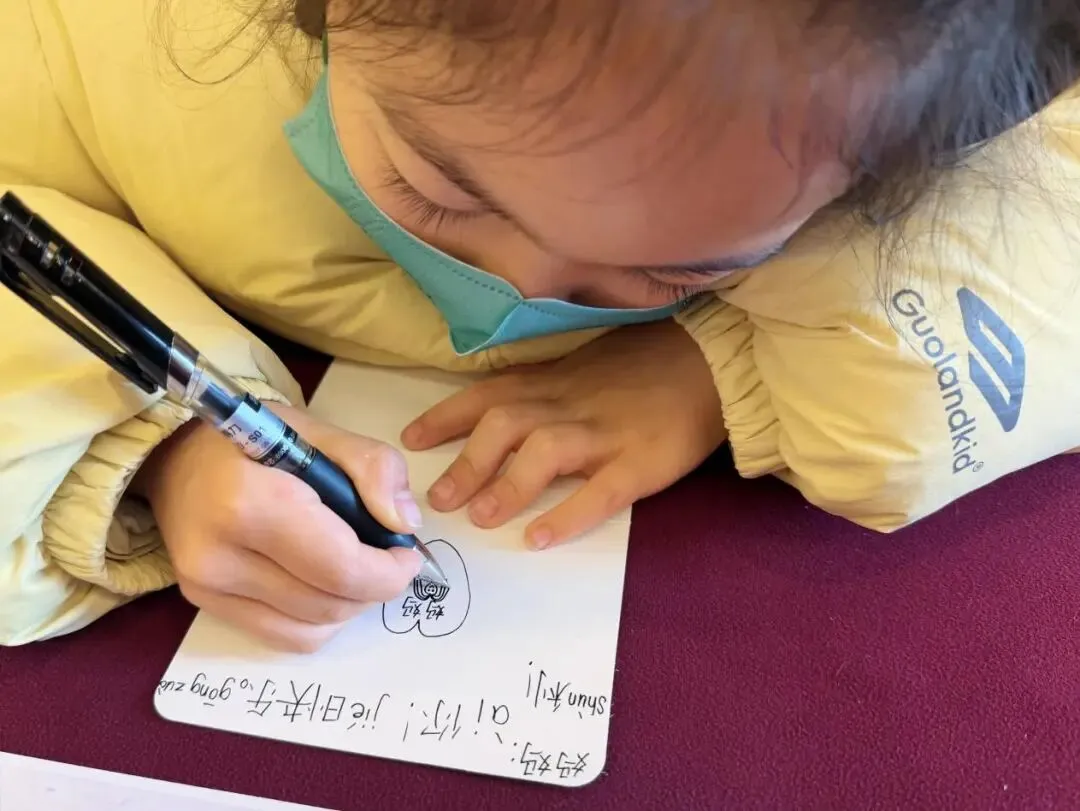 孩子们拿到贺卡,立刻化身小小告白家,趴在桌子上,认真地构思着对妈妈的祝福。
