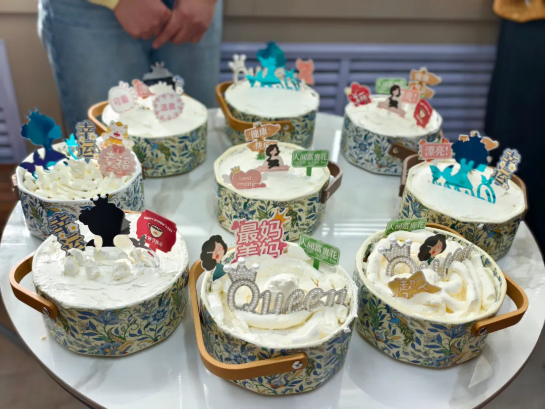 本次活动面向后勤全体女职工,时长1-2小时。现场暖意融融,零基础的姐妹们在酪禾集蛋糕房专业烘焙师的全程指导下,从食材分发、奶油打发到裱花装饰,一步步亲手制作专属蛋糕,活动以“蛋糕DIY+节日仪式+合影留念”的形式,让大家在欢声笑语中放松身心、增进交流,定格每一份甜蜜与欢喜。