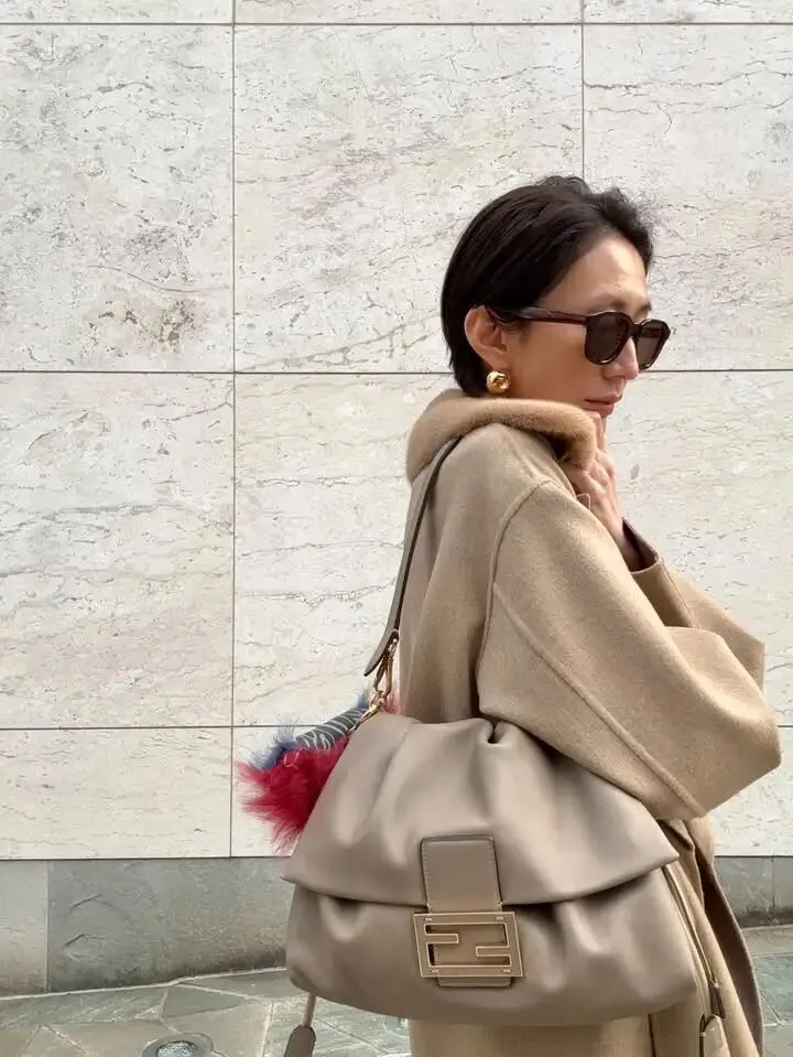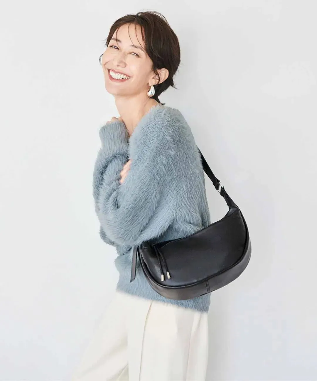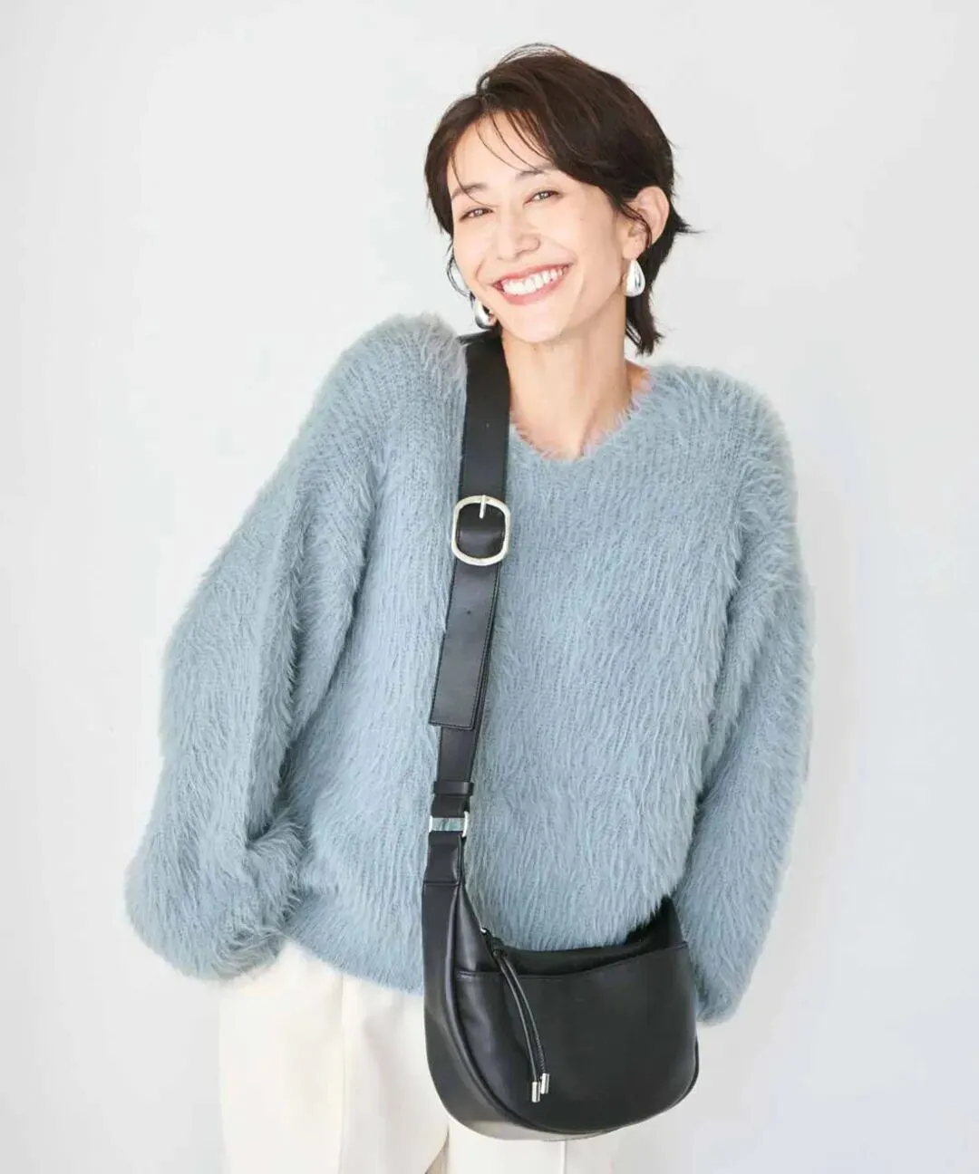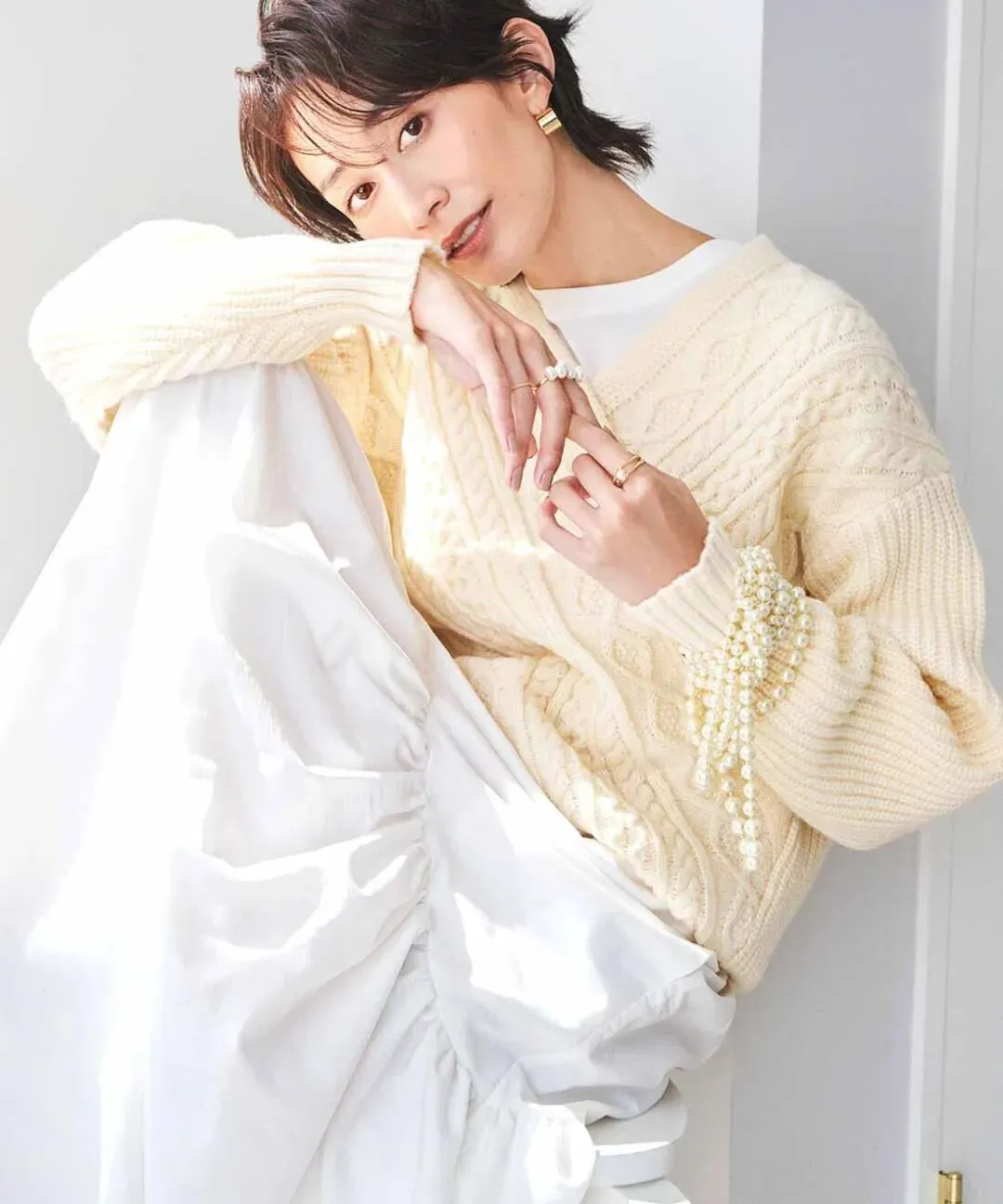 米白色毛衣拥有暖调的柔和光泽,就像被阳光滤过一般,自带柔光滤镜效果。再加上针织配饰的点缀,显得气质温润。