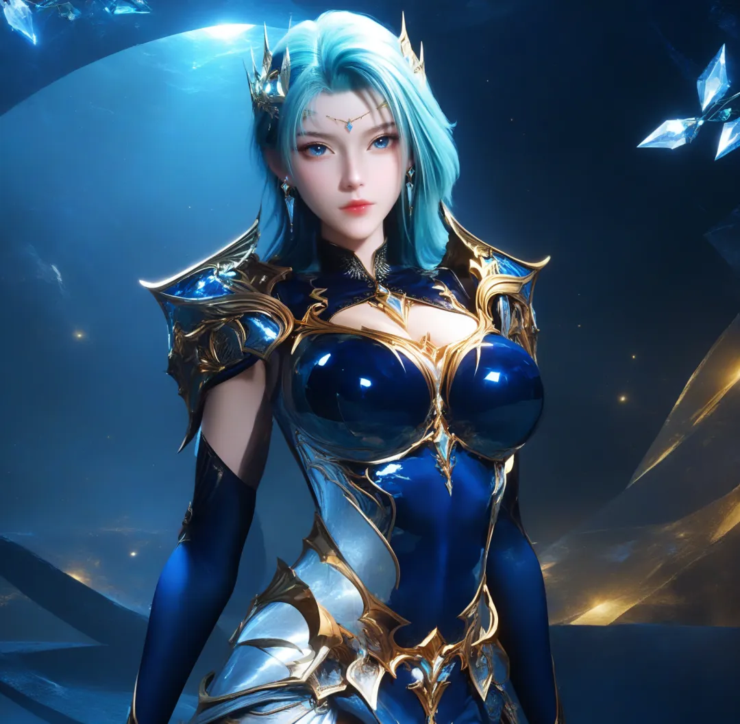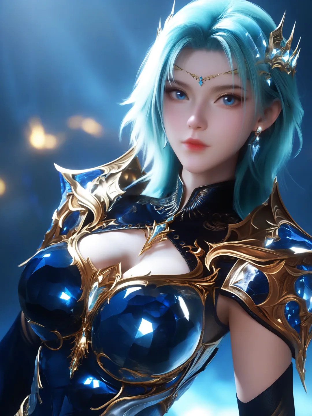 她生得一张标准的鹅蛋脸,轮廓分明,线条冷冽却不失柔美,眉眼间满是帝者威仪。眉如冰刃,是纤细凌厉的剑眉,眉色为浅冰蓝色,眉峰高耸,透着不容侵犯的孤傲;眼眸是深邃的冰蓝色,瞳仁如冰封的深海,清澈却冰冷,没有丝毫情绪波澜,看向旁人时,目光凛冽如刀,尽显帝王的孤傲与威严。睫毛纤长浓密,呈冰白色,轻颤间仿佛有雪花飘落,弱化了几分凌厉,添了几分仙气。