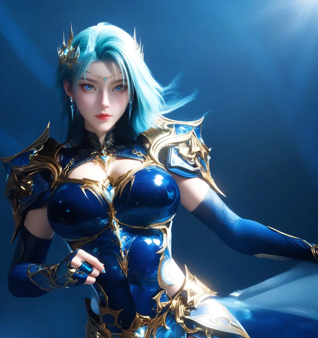 坐镇极北冰原、身为魂兽霸主时,冰帝身着冰蓝色冰绫战裙,由极北千年寒冰丝编织而成,坚硬且轻盈,兼具防御与美观。战裙为紧身款式,勾勒出挺拔修长的身姿,领口为立领设计,镶着冰白色滚边,护住咽喉,尽显冷冽。