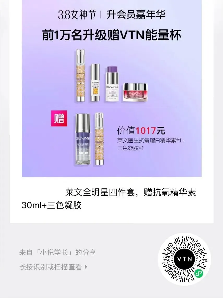 当前位置:首页>美女资讯>VTN3.8女神节-Dr.LeWinn's/莱文医生 全明星抗衰套组,赠三色凝胶*1+抗氧熠白精华素*1