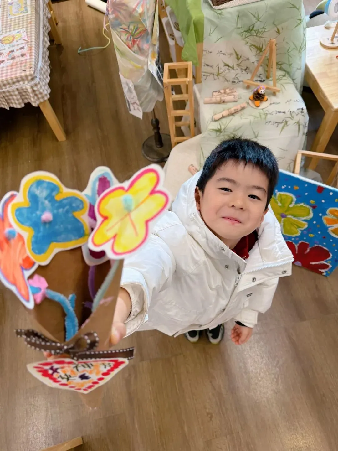 大一班的孩子们巧手做礼物,一张小小的贺卡,每朵亲手做的小花……每一件作品都藏着宝贝们最温暖的祝福,愿所有女性节日快乐,永远温暖如花。