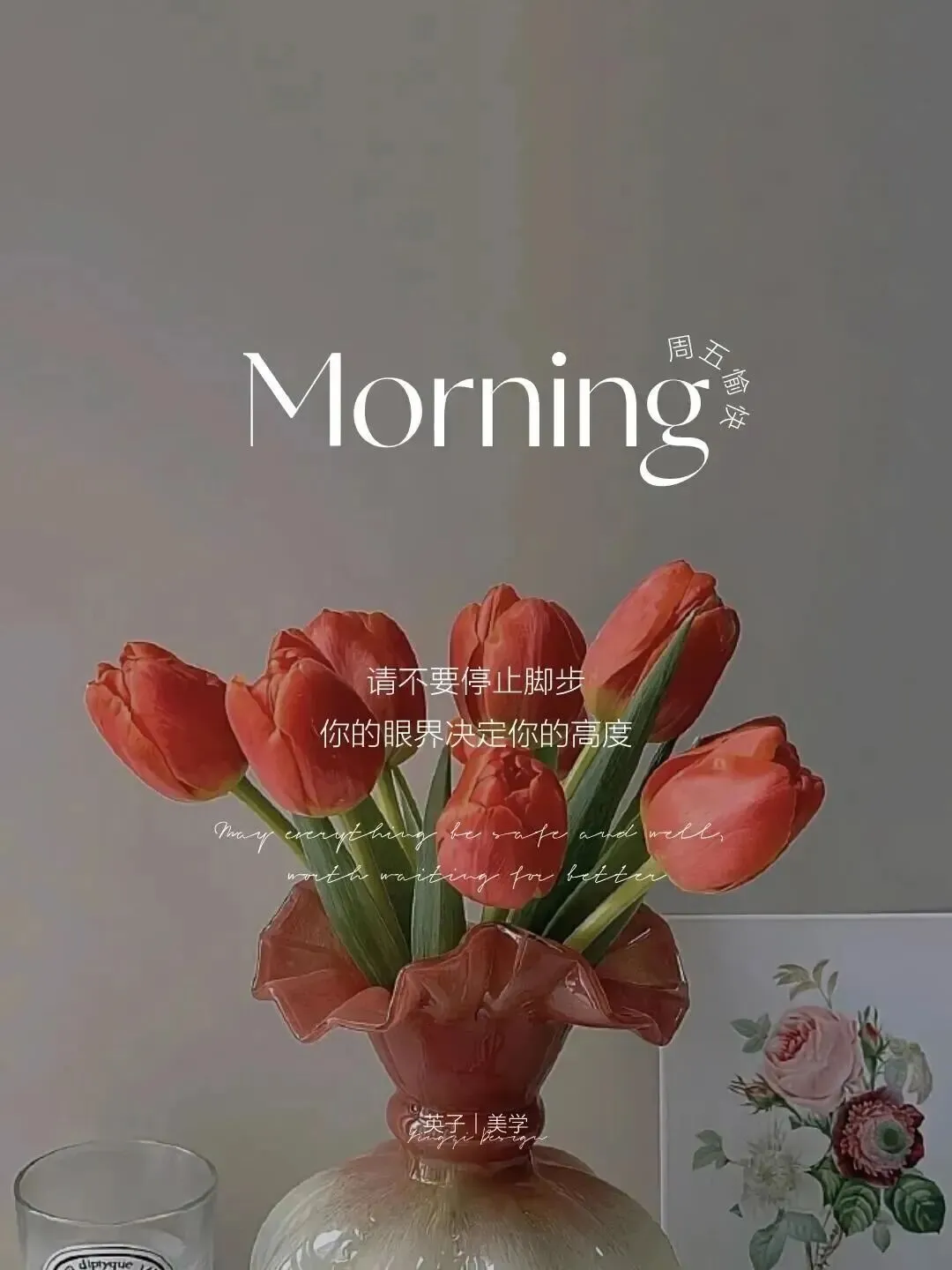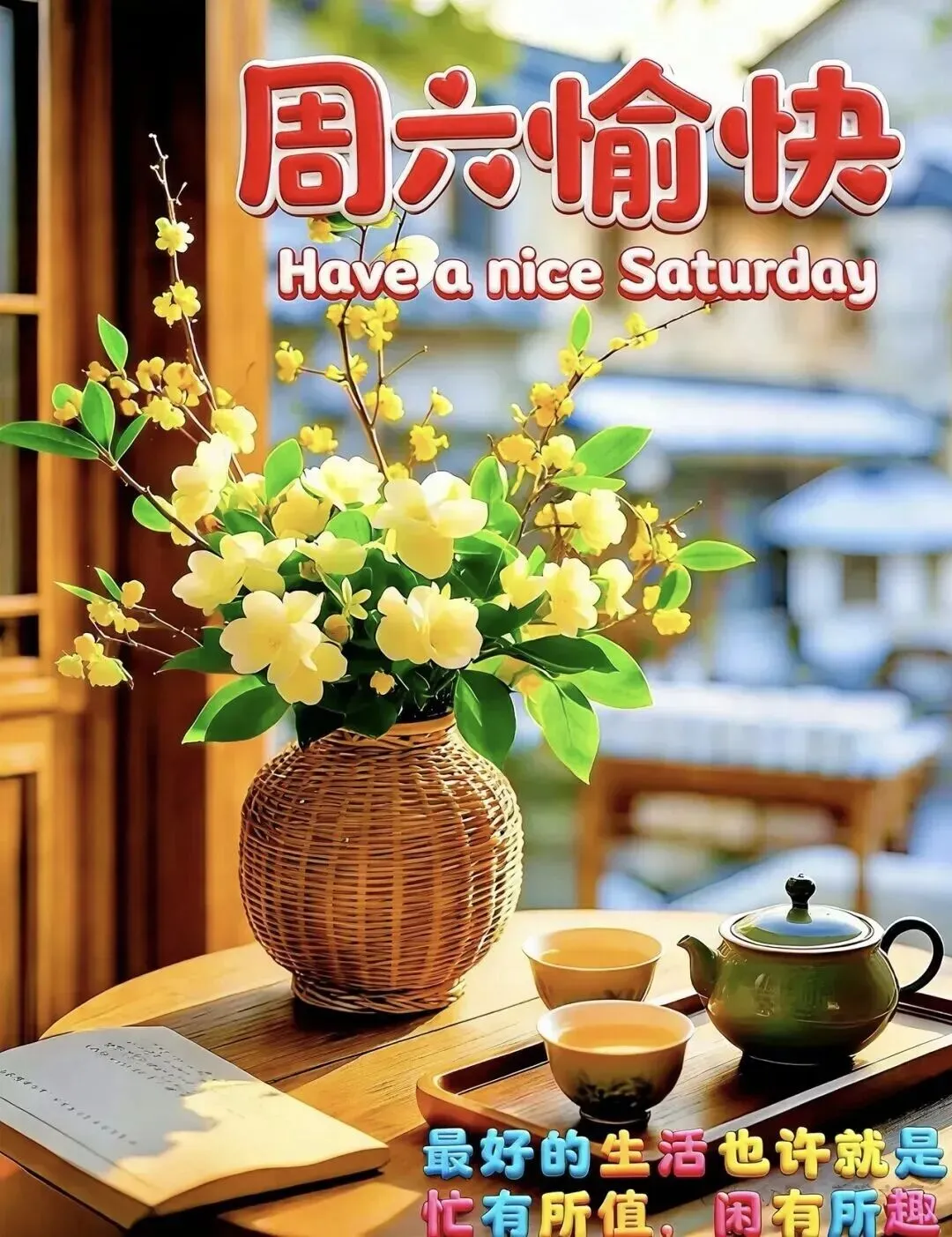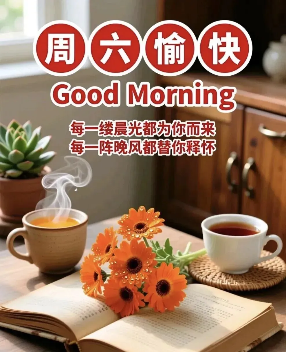 5. 周六早安哟😴!一周的奔波终于停歇,愿你在周六的温柔里找回松弛感✨。泡一壶清香的茶🍵,翻一本喜欢的书📖,或是发发呆想想未来,慢下来的时光,每一秒都值得珍惜~