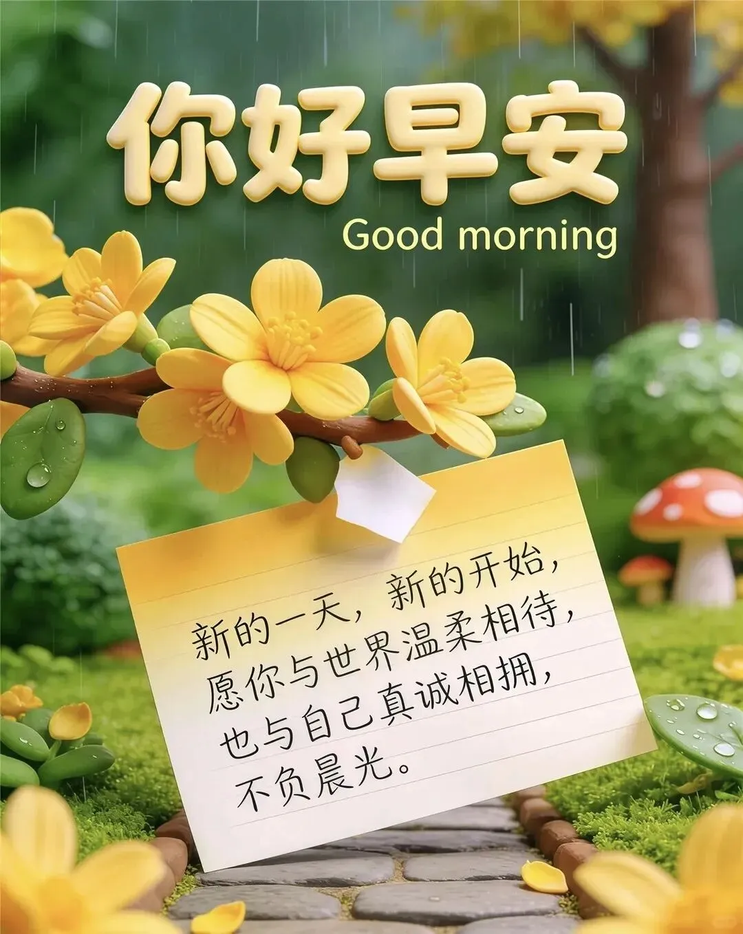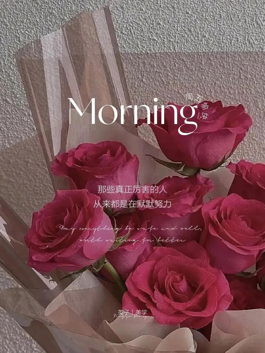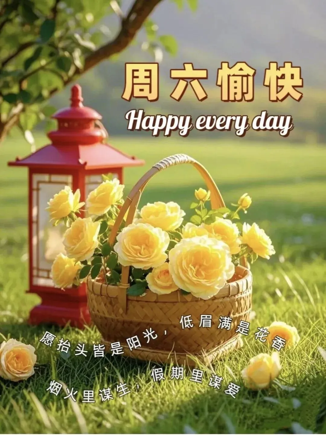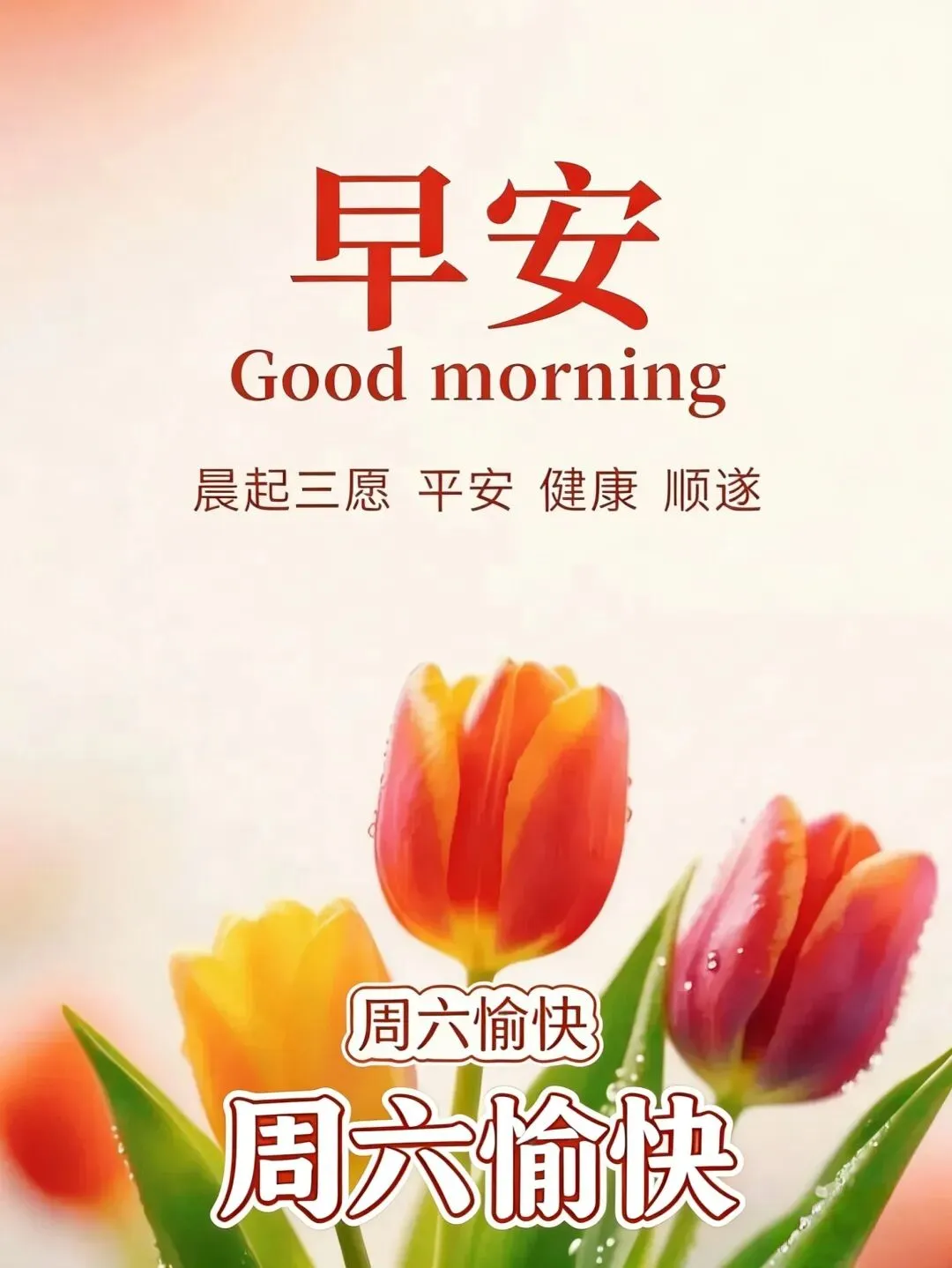 5. 周六早安哟😴!一周的奔波终于停歇,愿你在周六的温柔里找回松弛感✨。泡一壶清香的茶🍵,翻一本喜欢的书📖,或是发发呆想想未来,慢下来的时光,每一秒都值得珍惜~