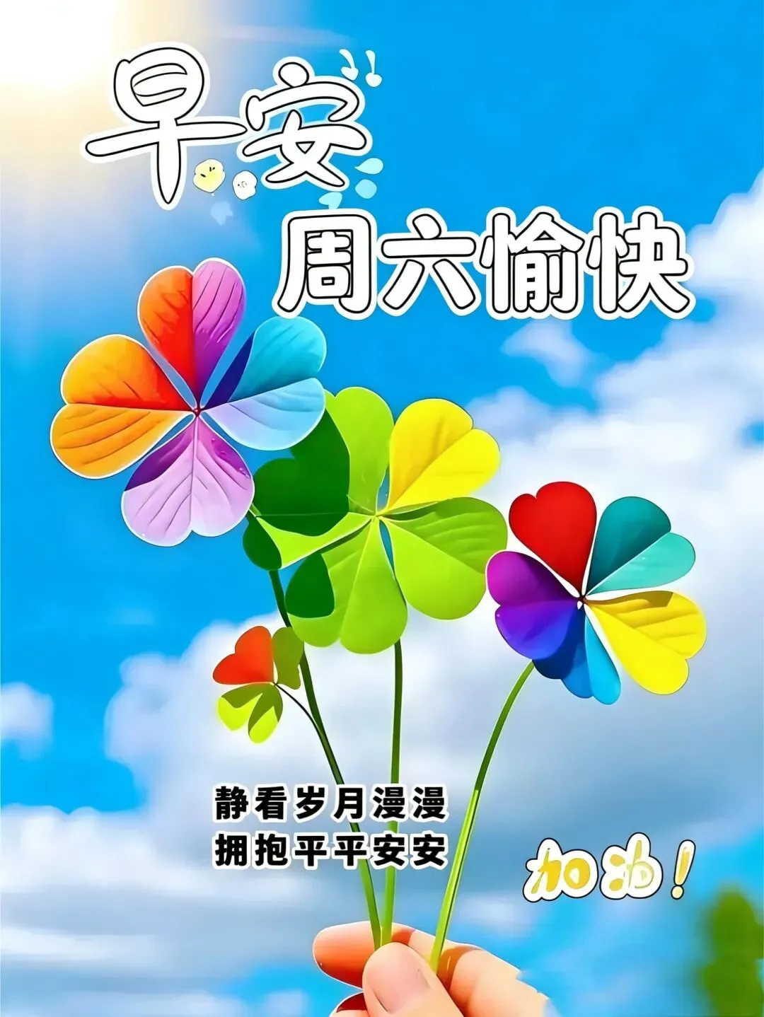 1. 周六早安呀☀️!一周的忙碌终于画上句号,愿你把烦恼统统抛在身后,慢悠悠享受慵懒时光。泡杯热茶🍵,窝在沙发追剧,或是出门晒晒太阳🌞,怎么舒服怎么来,让身心都浸在温柔里,新的一天超自在~