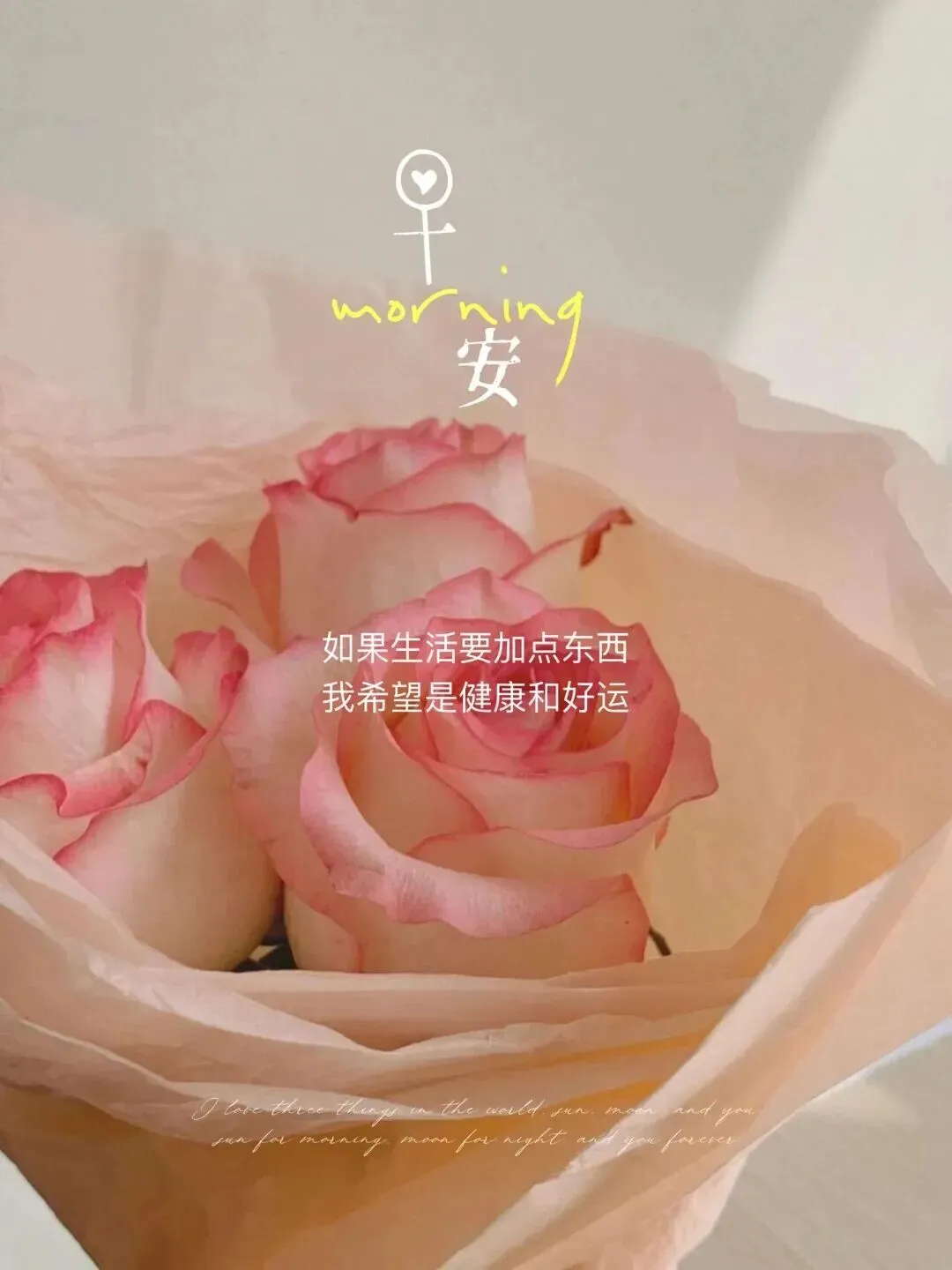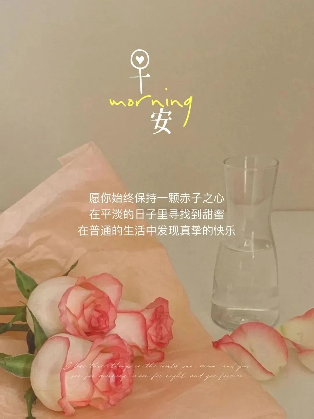 13. 周六早安哟😴!把烦恼都丢进风里,让快乐填满周六的每一刻☀️!赖床到自然醒,再慢悠悠吃早餐🥣,听听歌🎵,撸撸宠物🐶,做些随心所欲的事,今天超自在,超开心~