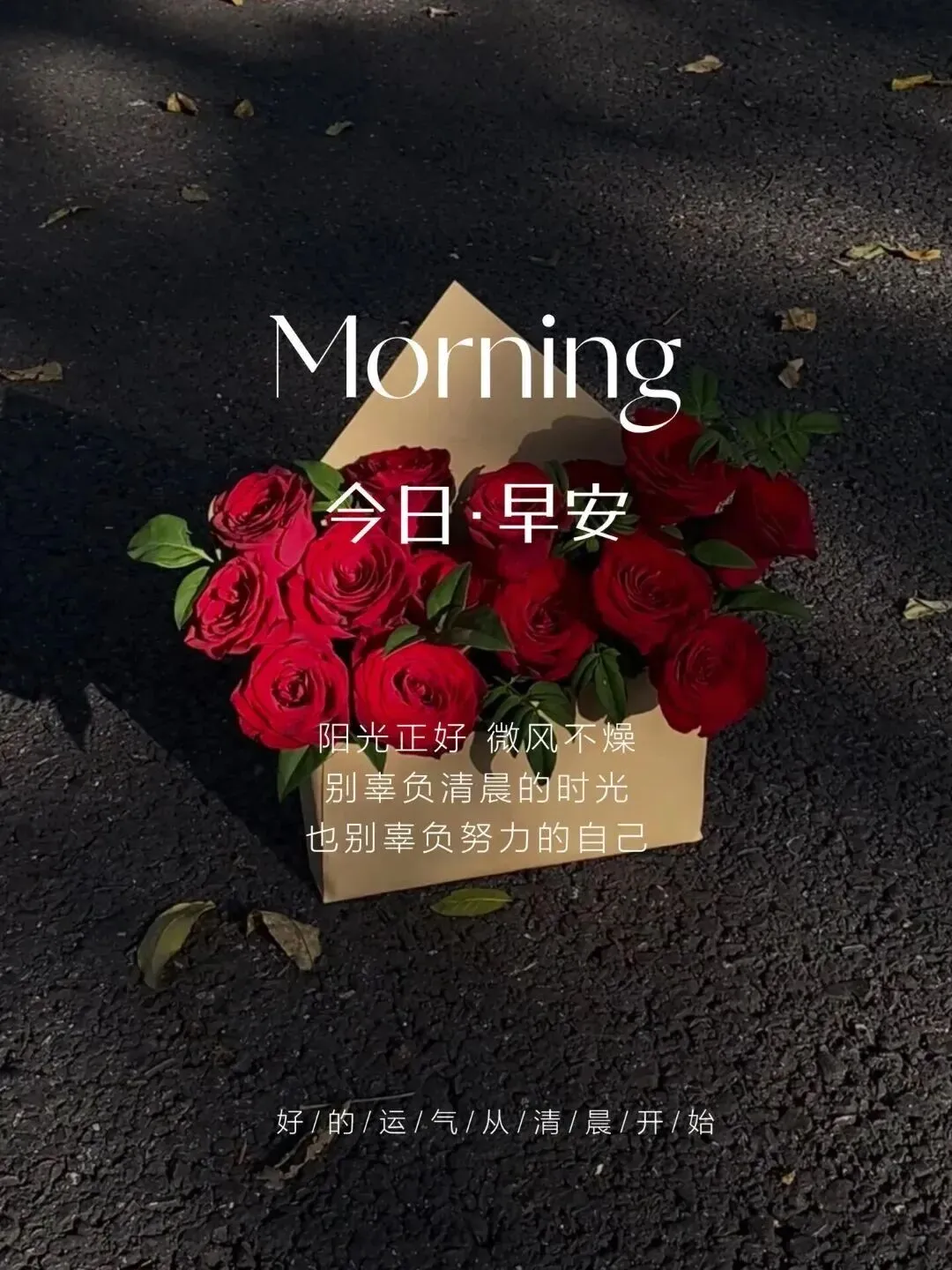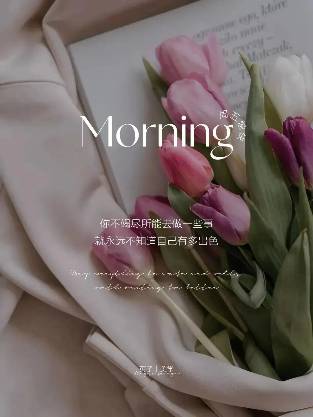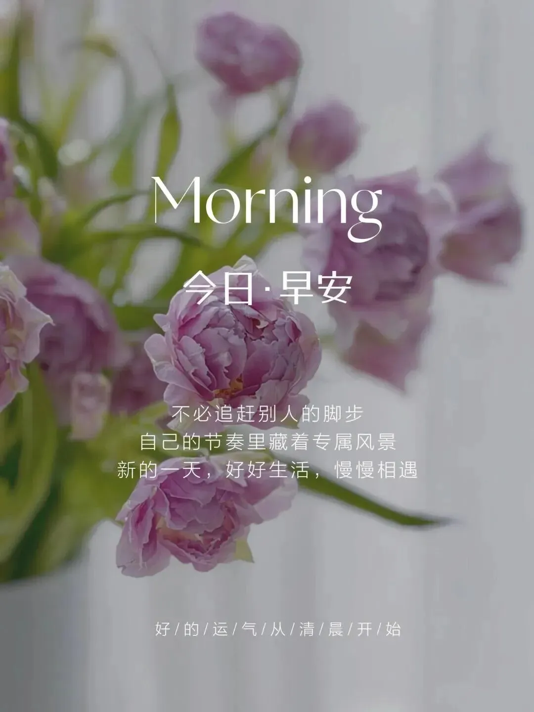 10. 早上好呀☀️!周六是属于自己的浪漫时光🌸!可以去花店买束鲜花💐,插在客厅的花瓶里,或是去郊外赏赏花🌼,吹吹晚风🍃,把生活过成诗,每一步都透着温柔与惬意~