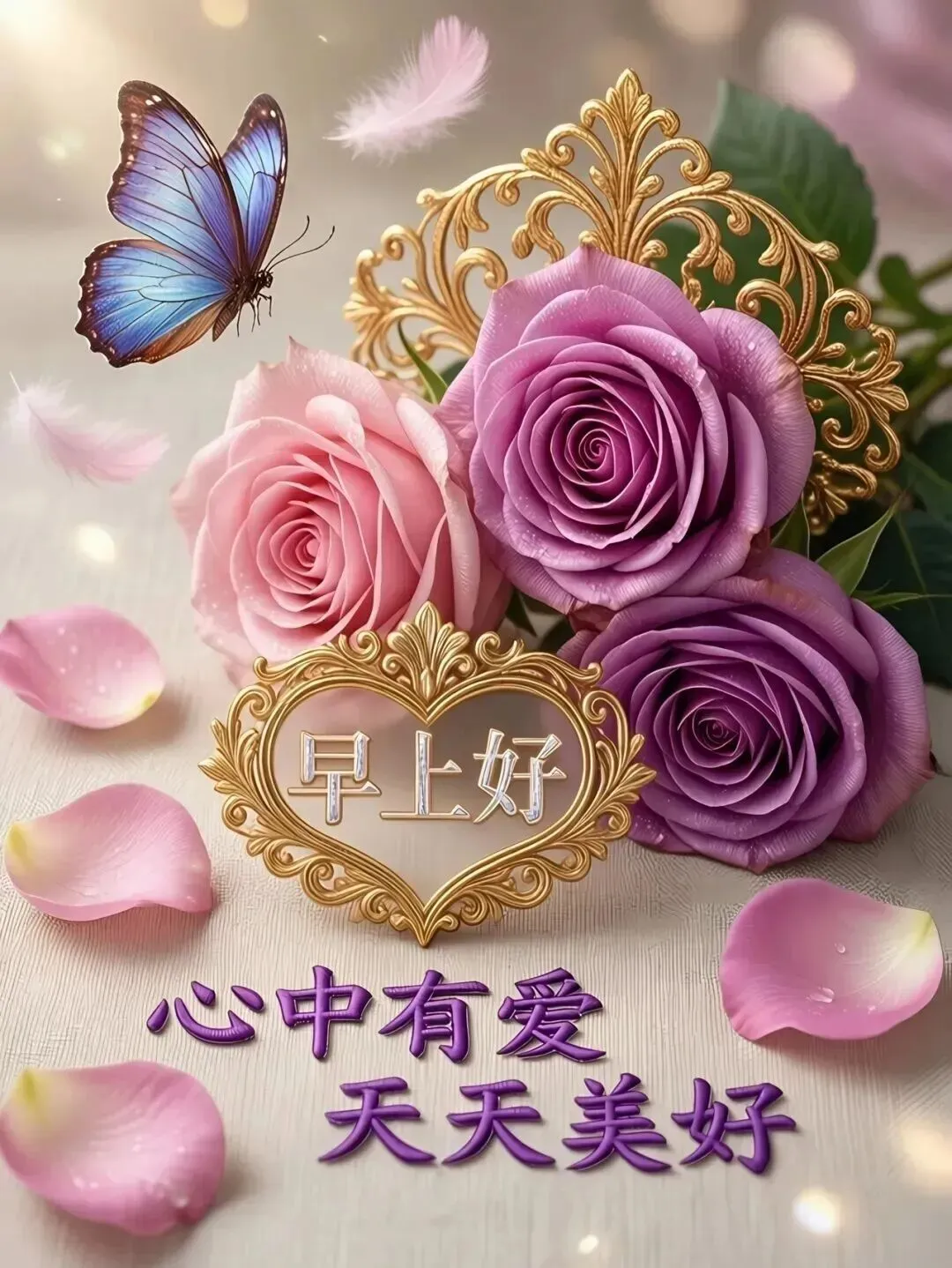 温柔的清晨,祝福送上,愿你日日平安喜乐。心怀坦荡,自带光芒,好运与你步步同行。天护人安,福气绵长,愿你的日子满是温暖,所有美好都如约而至。早安!