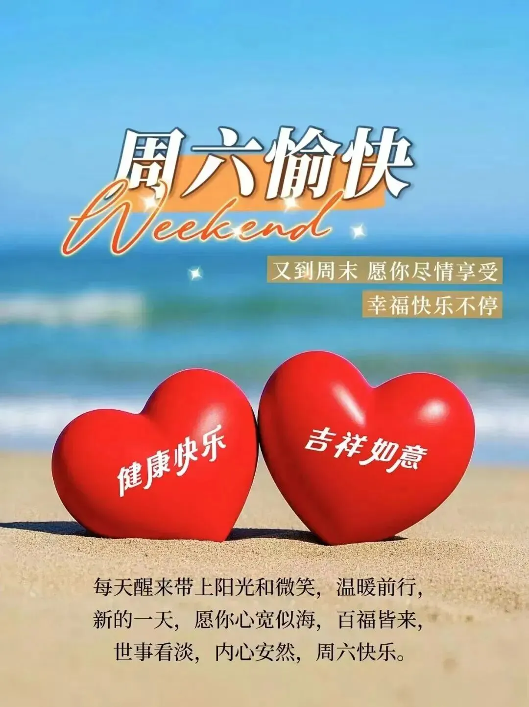 祝福似暖阳,幸福伴身旁,新的一天新气象,愿你每天都安康,岁月静好心舒畅,开心快乐无忧伤,祝福满满心意长,笑容灿烂映朝阳,周六早上好!