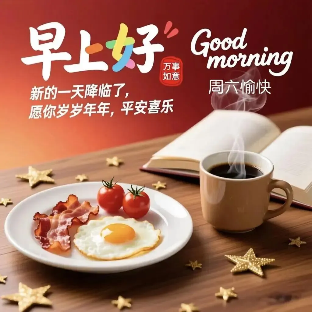 愿美丽陪你散步,愿健康陪你用餐,愿幸福陪你休息,愿快乐陪你聊天,愿平安陪你工作,愿开心陪你休闲。愿我的祝福,陪你迎接新的每一天!周六早上好!
