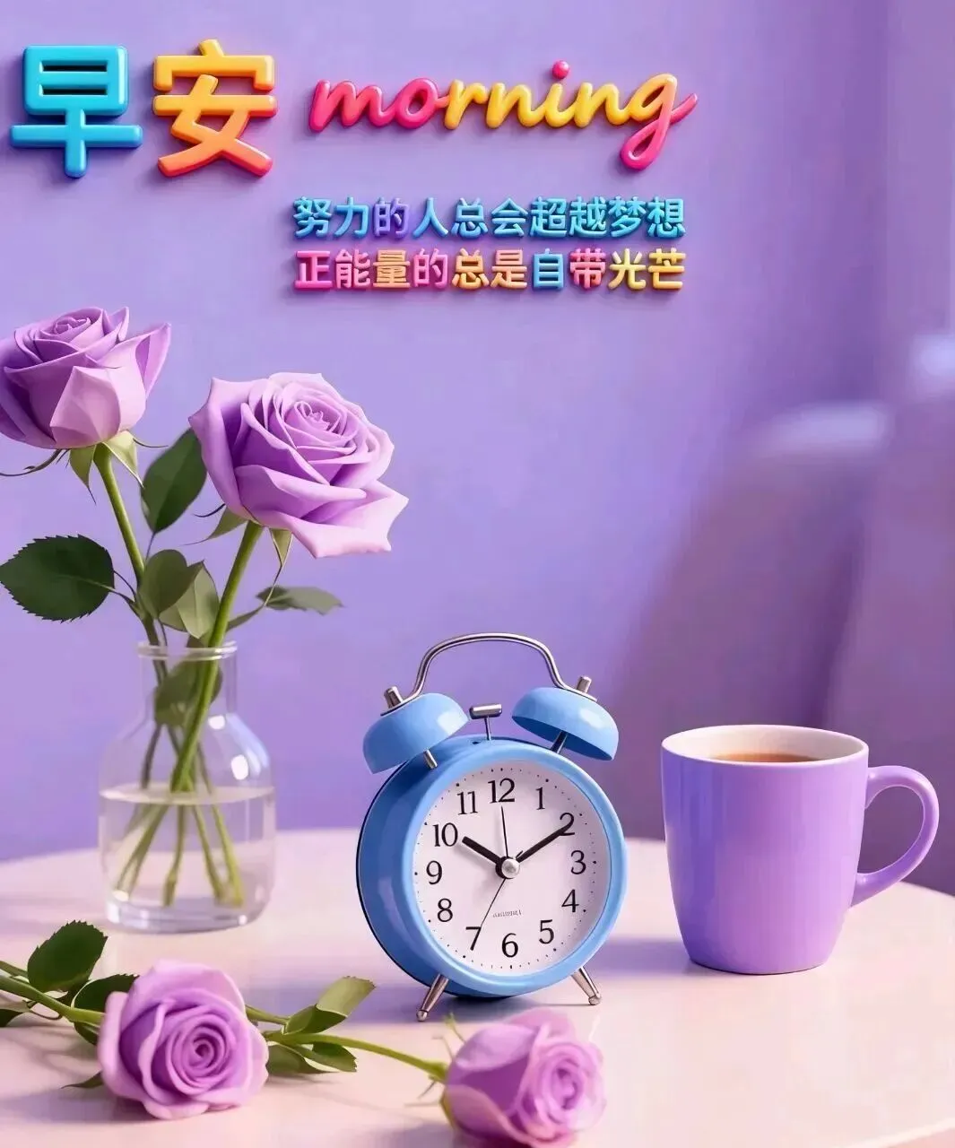 今天的你,开心常伴😊;今年的你,万事顺遂✨;今生的你,平安健康💪;今世的你,幸福圆满❤️;早上好🌞,愿你一天好心情🌟