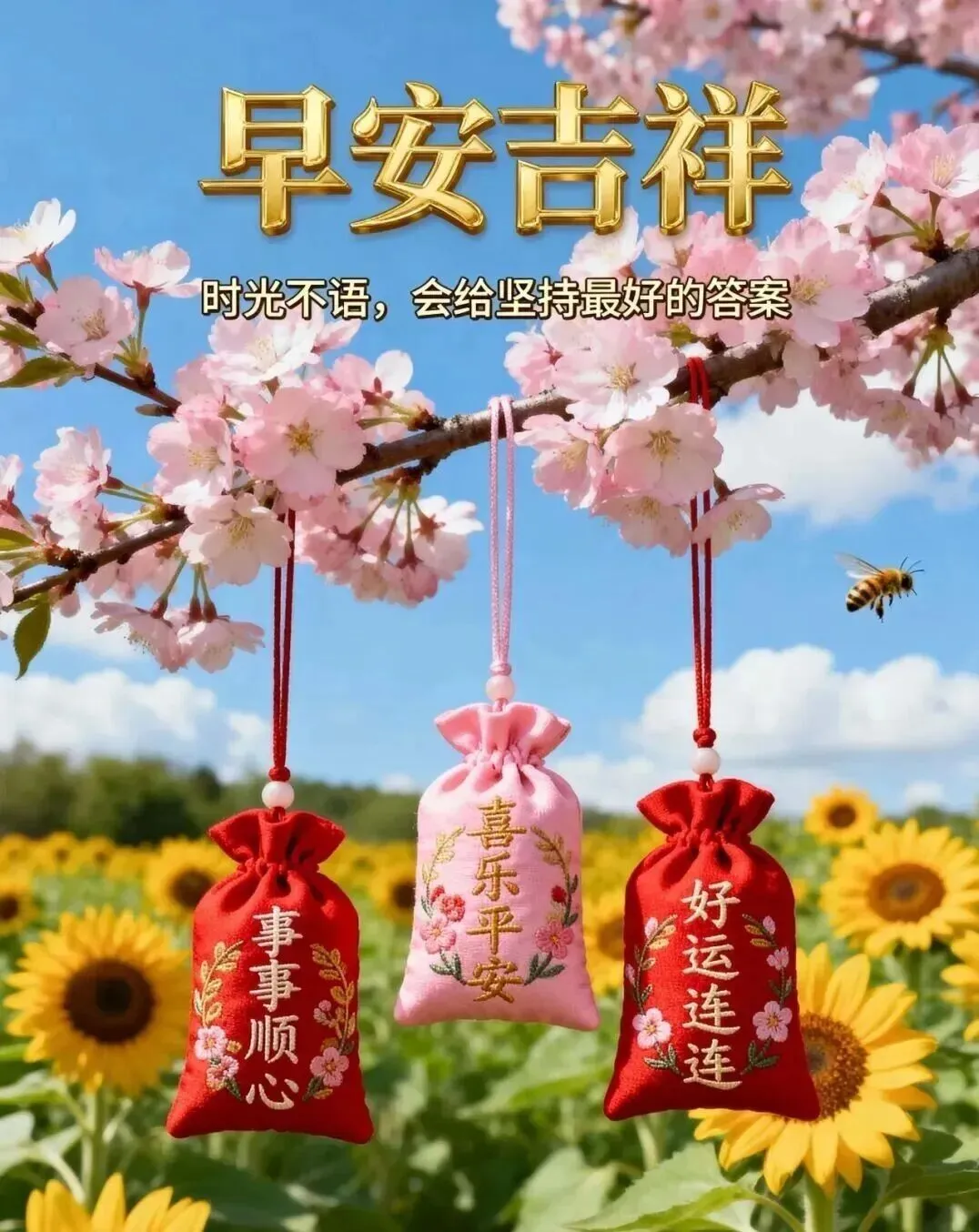 愿你的每一天都像蜜糖一样甜,每一刻都像阳光一样明媚,每一步都像风筝一样自由,每一时都像花朵一样绚丽。祝你在新的一天里充满动力和勇气,迎接美好的未来!