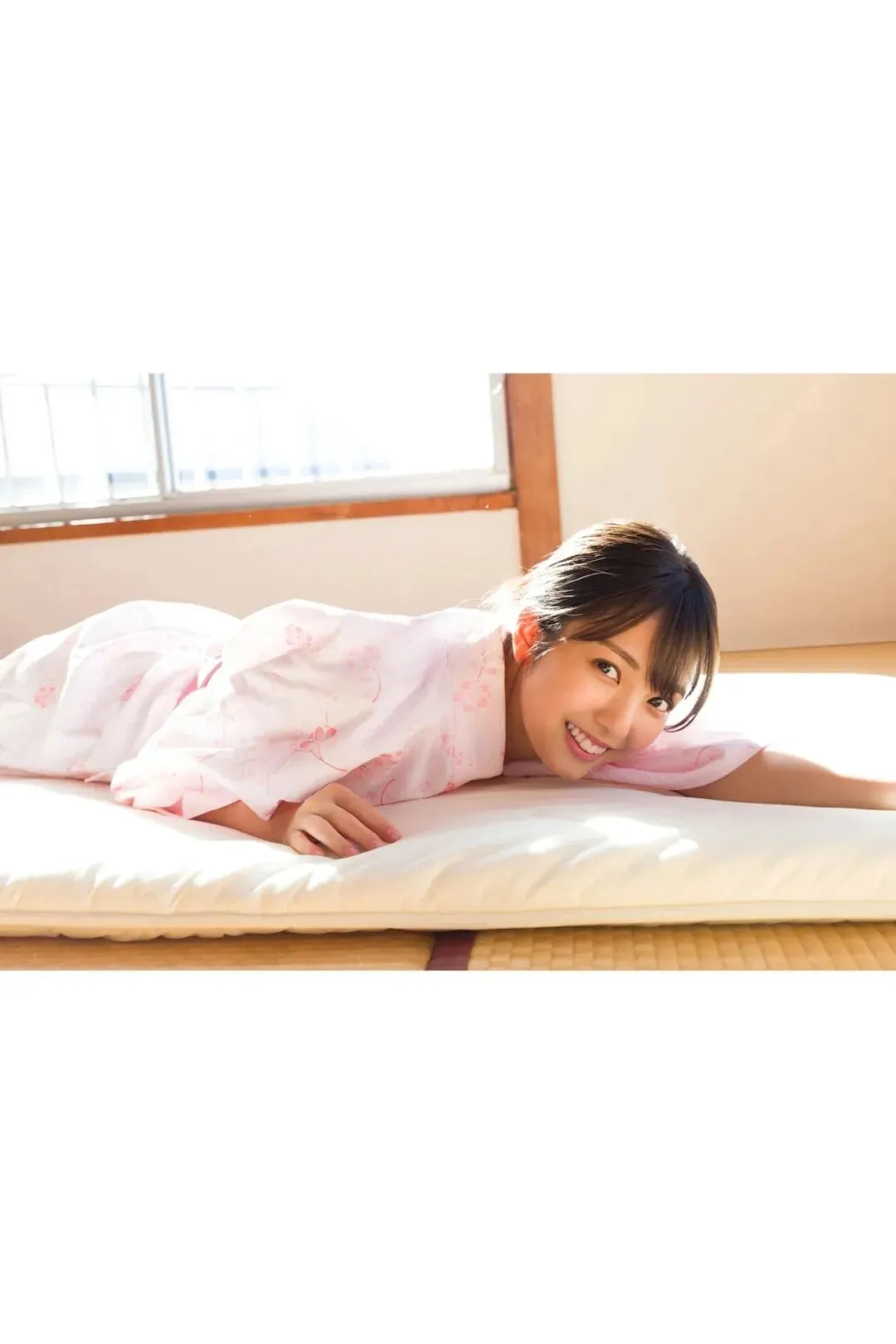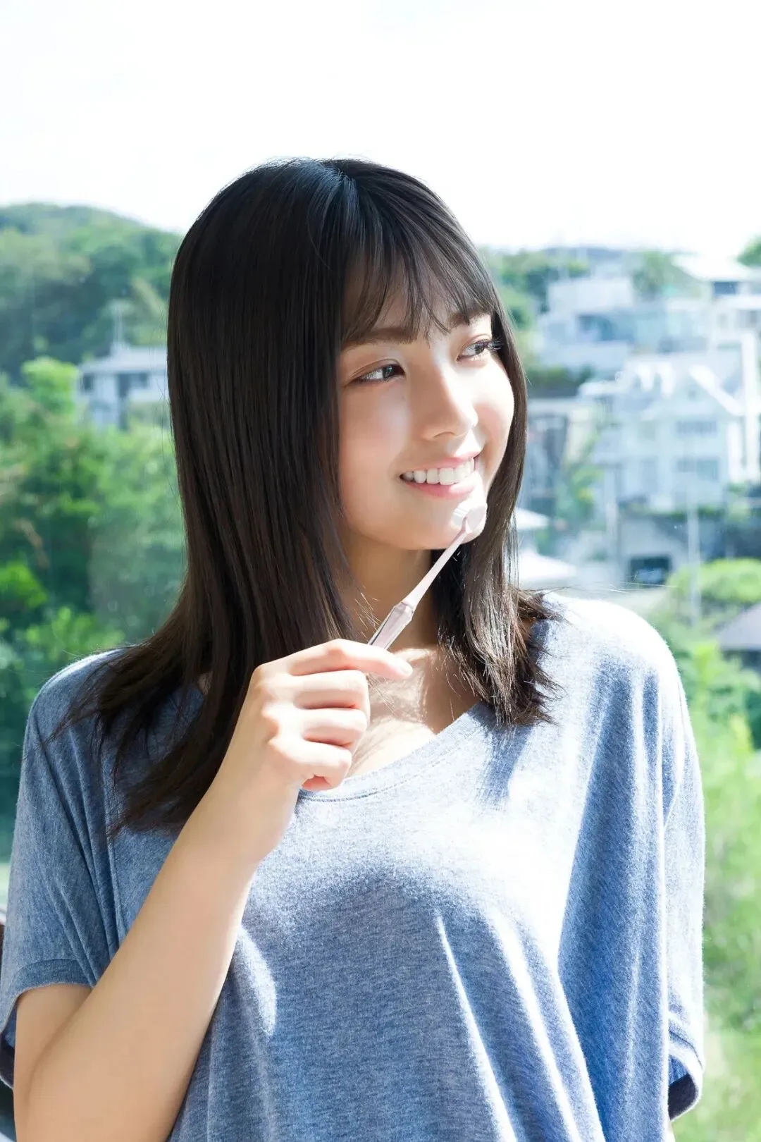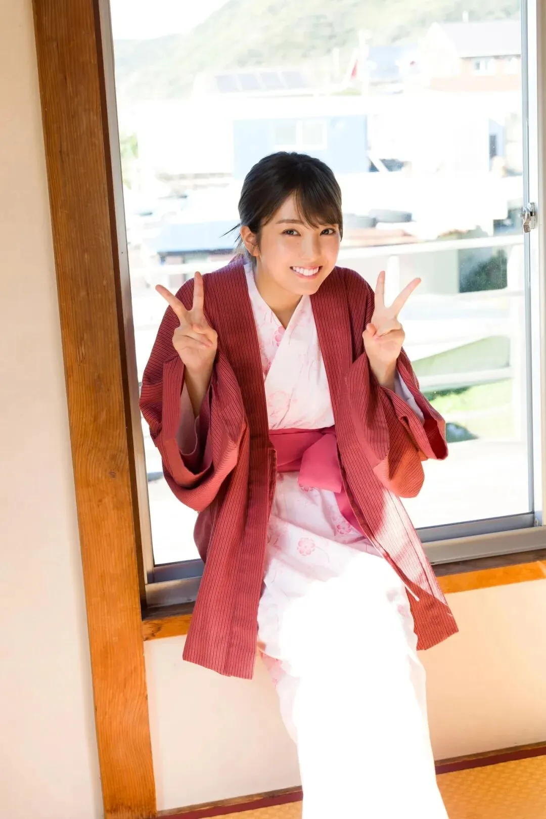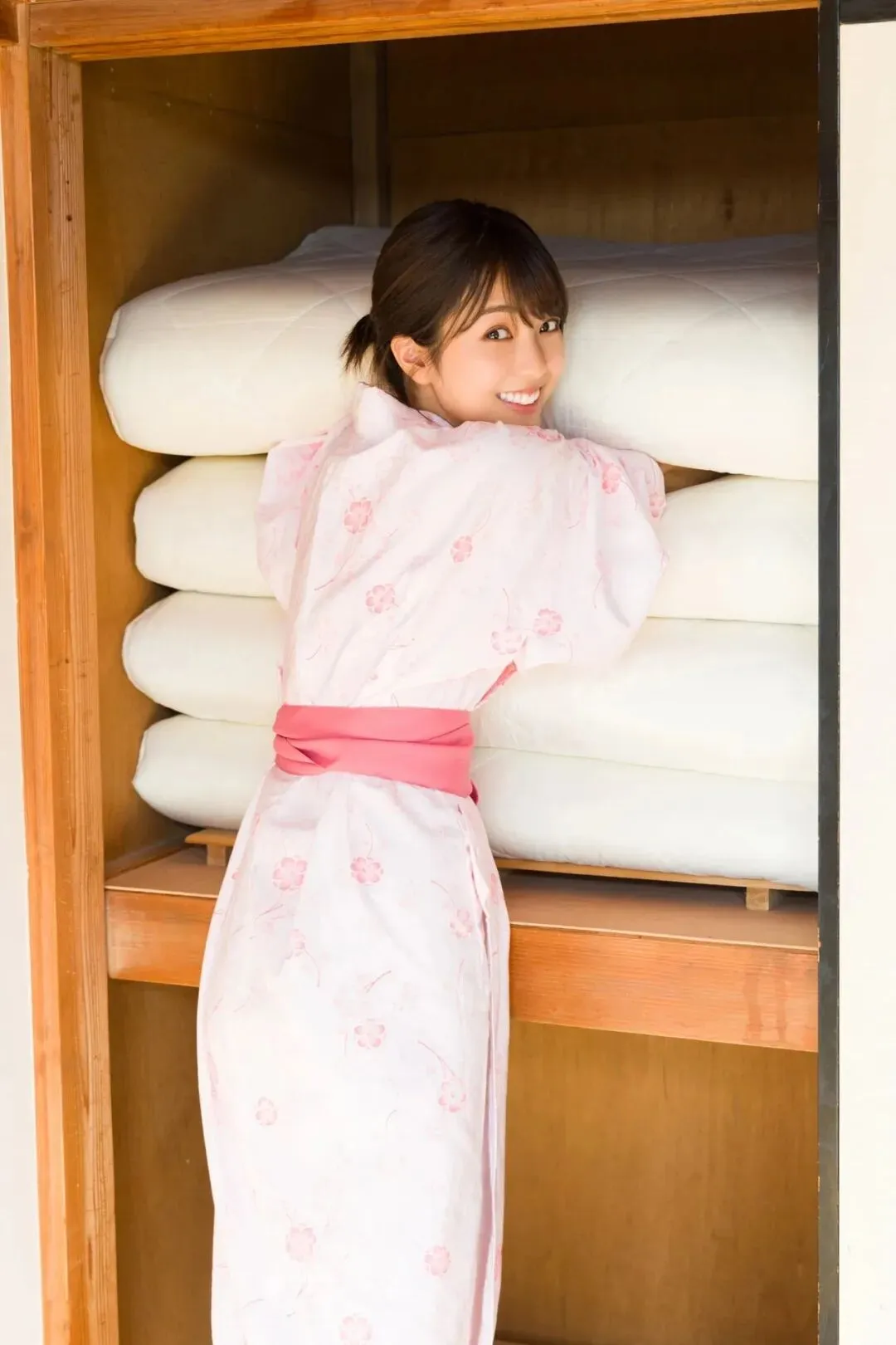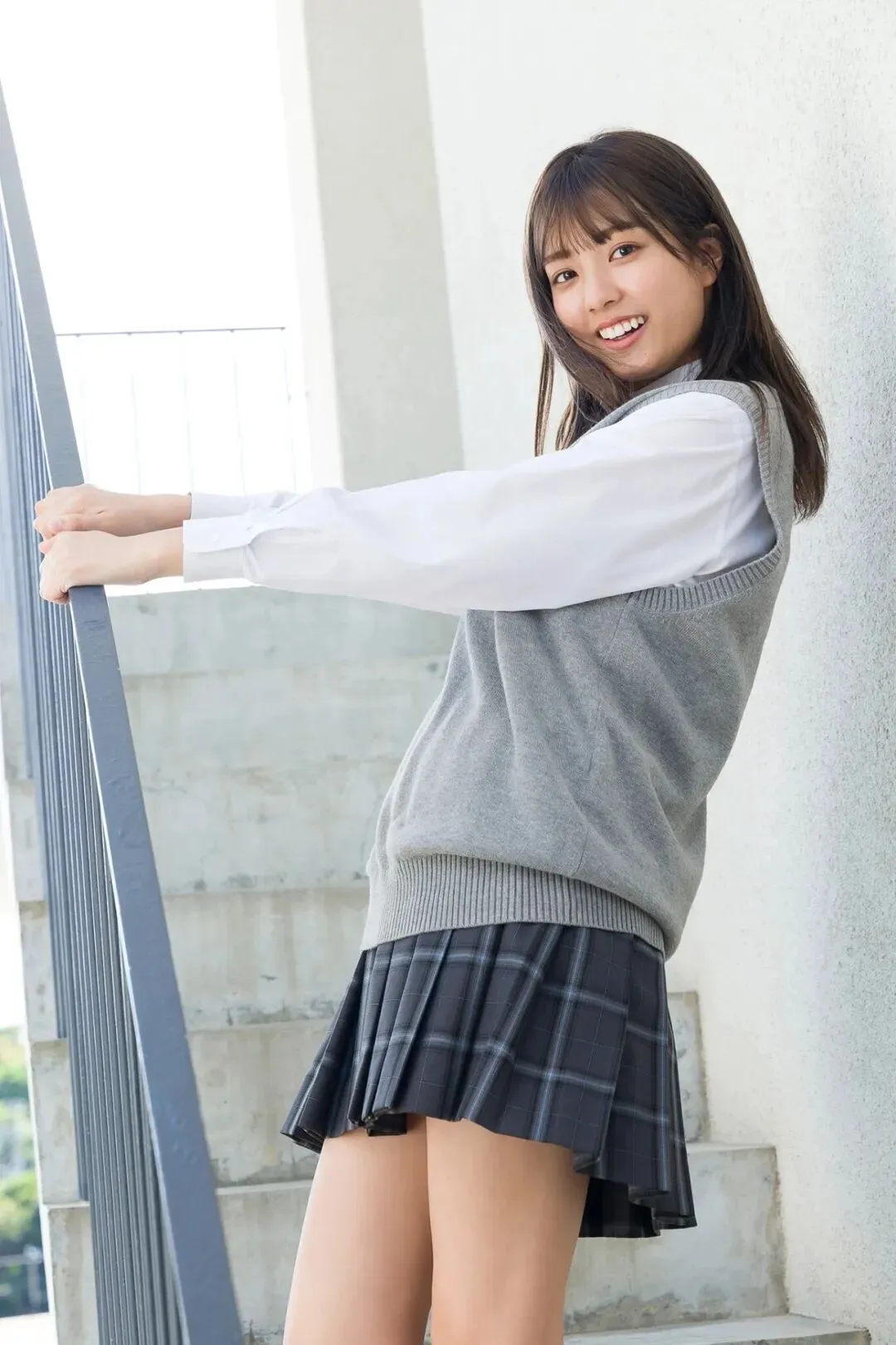 作为《Popteen》专属模特出道,她的镜头表现力堪称满分。水手服造型是她的经典标签,洁白短袖搭配深蓝领结,百褶裙随风轻摆,柔顺长发垂落肩头,跪坐在木质地板上的模样,像从校园漫画里走出来的女主角,端庄又乖巧。