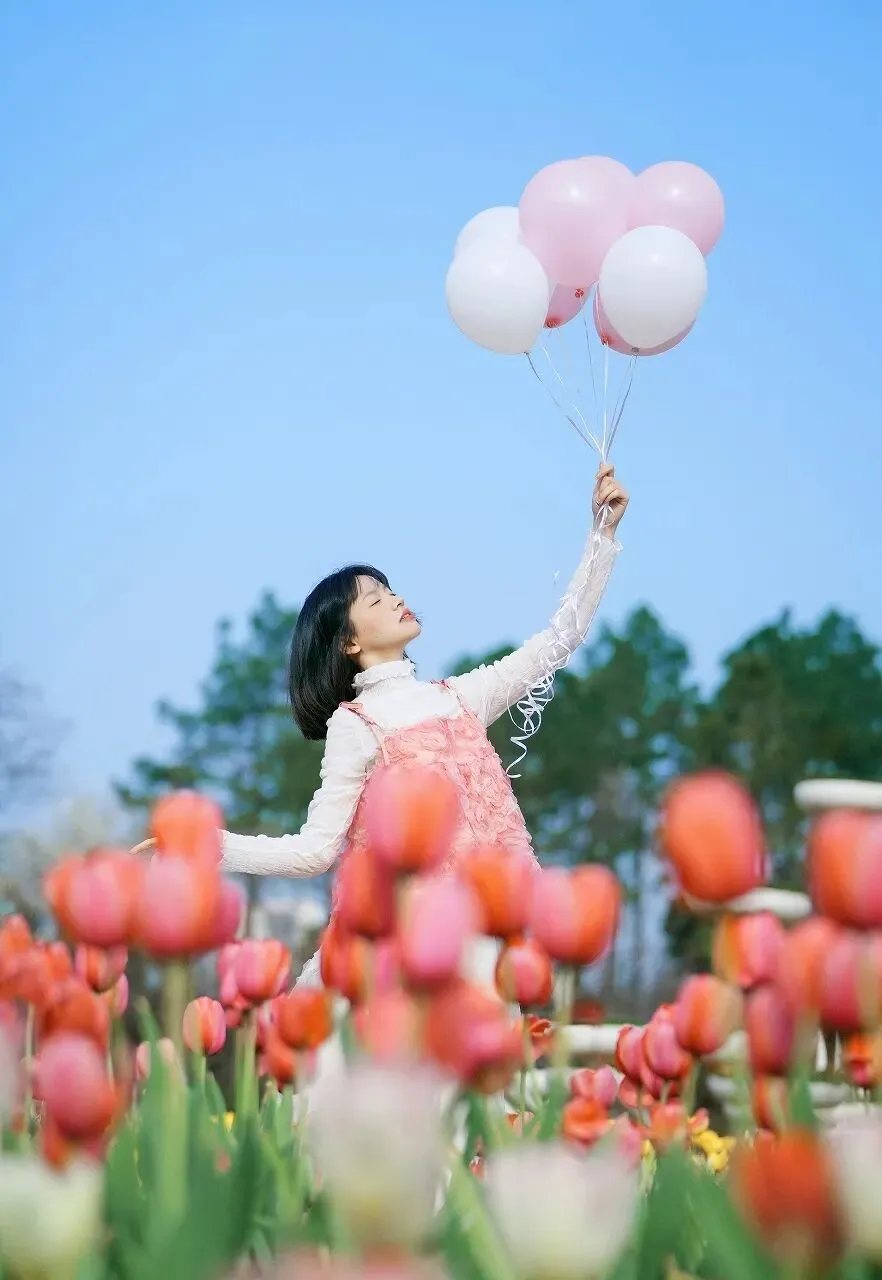 少女的这身穿搭就是甜美风格的典型代表。白色的薄纱裙、粉色的花朵装饰,以及心形气球,这些元素都充满了少女感,让人仿佛置身于童话世界中。甜美风格的穿搭不仅能展现出少女的青春魅力,还能让人心情愉悦,感受到生活的美好。气球,在人们的生活中常常象征着欢乐与庆祝。无论是节日庆典还是生日派对,气球总是能营造出一种欢快的氛围。而少女手中的心形气球,更是将这份欢乐与爱意传递到了极致。它让我们想起了童年时的无忧无虑,想起了那些美好的回忆和纯真的梦想。在这个快节奏的时代,我们或许已经渐渐忘记了那份简单的快乐,而这位抱气球的少女,却让我们重新找回了那份感觉。愿每一位少女都能像她一样,永远保持这份甜美与纯真,在春日的阳光下绽放出属于自己的光彩。让我们在这美好的季节里,与爱相伴,与美好同行,共同书写属于我们的春日故事。因为,每一个少女都是春天里最美的风景,都值得被世界温柔以待。