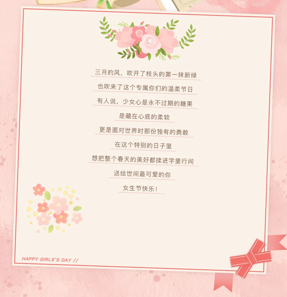 愿你眼里有光、心中有爱,不被岁月抹去光芒✨愿你一生被爱,自在如风,无惧时光,永远美丽从容,妇女节快乐~