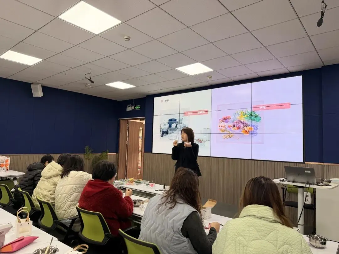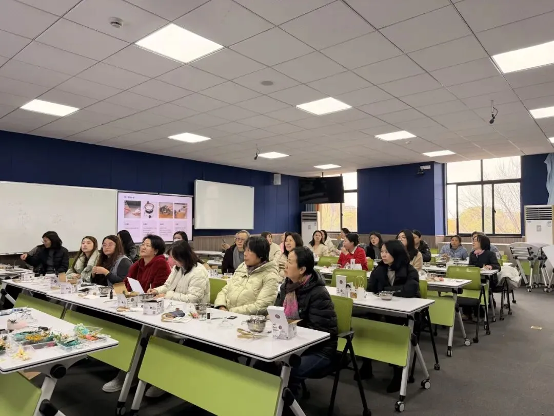 活动现场,老师们满怀期待与热情参与其中。制作指导环节后,大家纷纷动手体验香薰蜡烛制作,从挑选装饰、固定烛芯、调配香氛,到装至容器,每一个步骤都细致用心、创意满满。经过近 60 分钟的巧思制作,一盏盏造型别致、香气馥郁的香薰蜡烛新鲜出炉,独特的设计里藏着老师们的巧思,淡淡的芬芳中洋溢着节日的喜悦。亲手制作的成品不仅是一份别致的手作纪念,更让老师们在动手实践中舒缓了身心,感受着手工创作的乐趣。