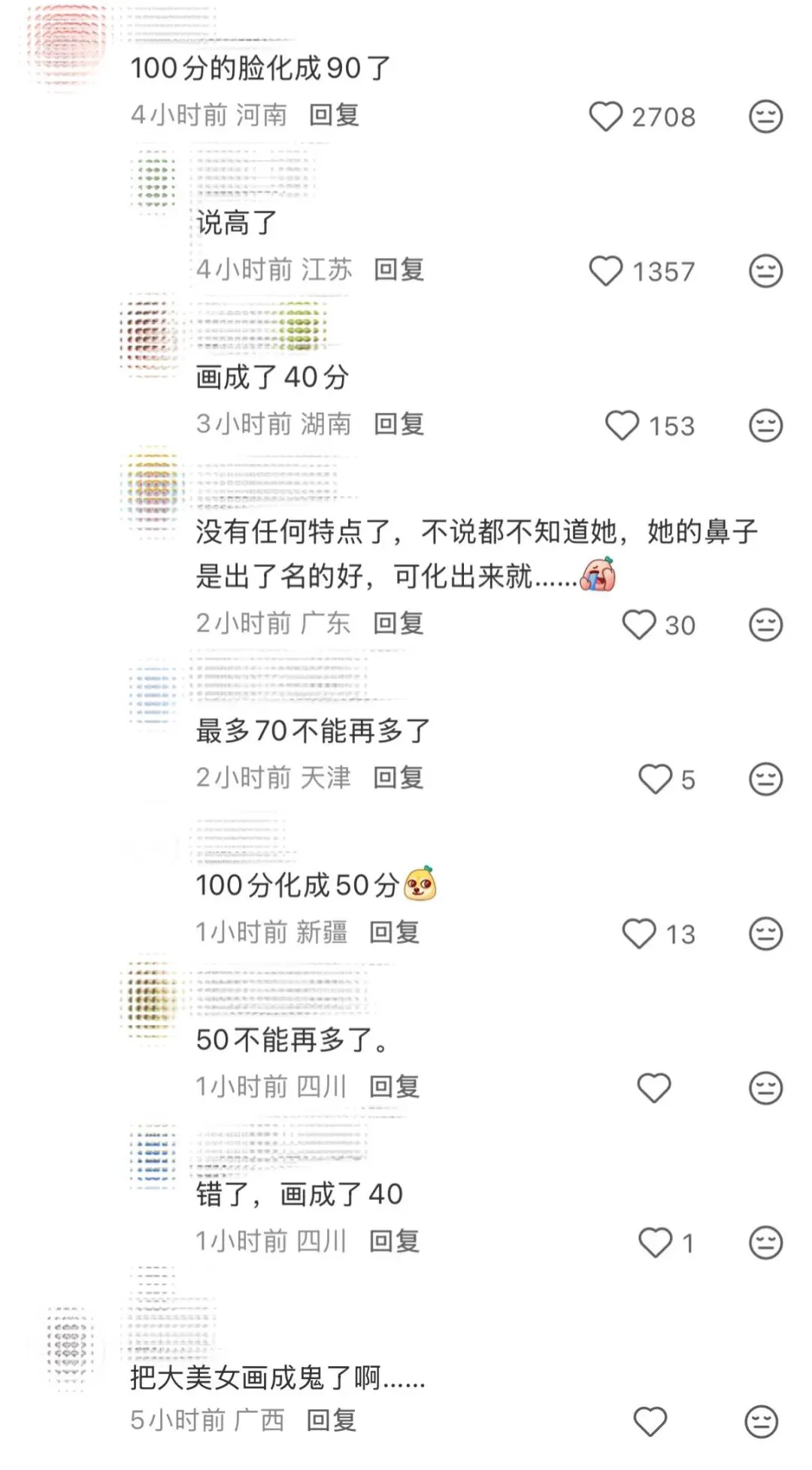 "100分的脸化完只剩61分。"
