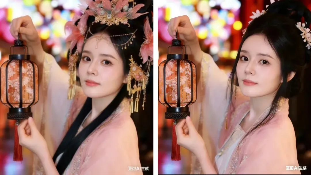 有网友用AI帮她“卸了一部分妆”,干干净净的,瞬间就把原本的美貌显现出来了。