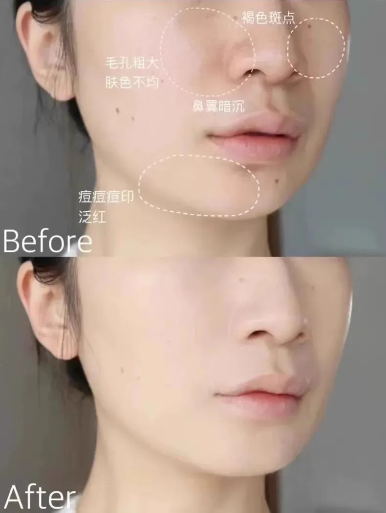 轻拍一层就能均匀肤色,局部叠加还能有效遮盖痘印、泛红、黑眼圈。