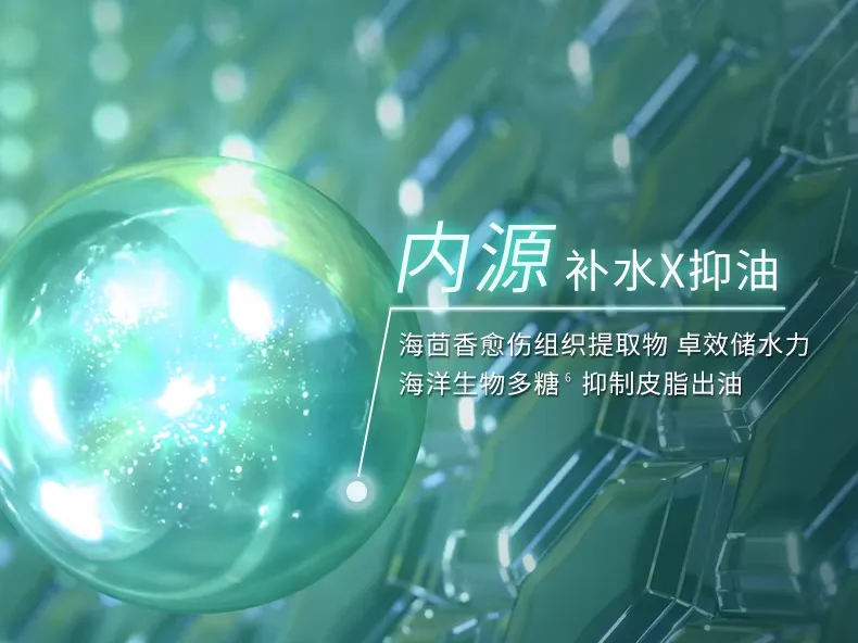 叠加海洋生物多糖强大的刮油力,能够抑制皮脂腺出油,皮肤自然清爽哑光。