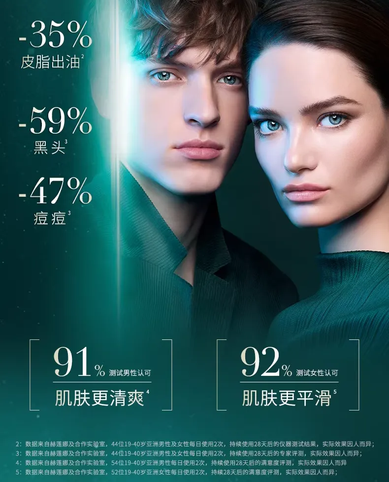 别的先不说,光看数据就足够亮眼,使用一个周期,皮脂出油能减少-35%痘痘能减少-47%黑头表现是最亮眼的,能减少59%~