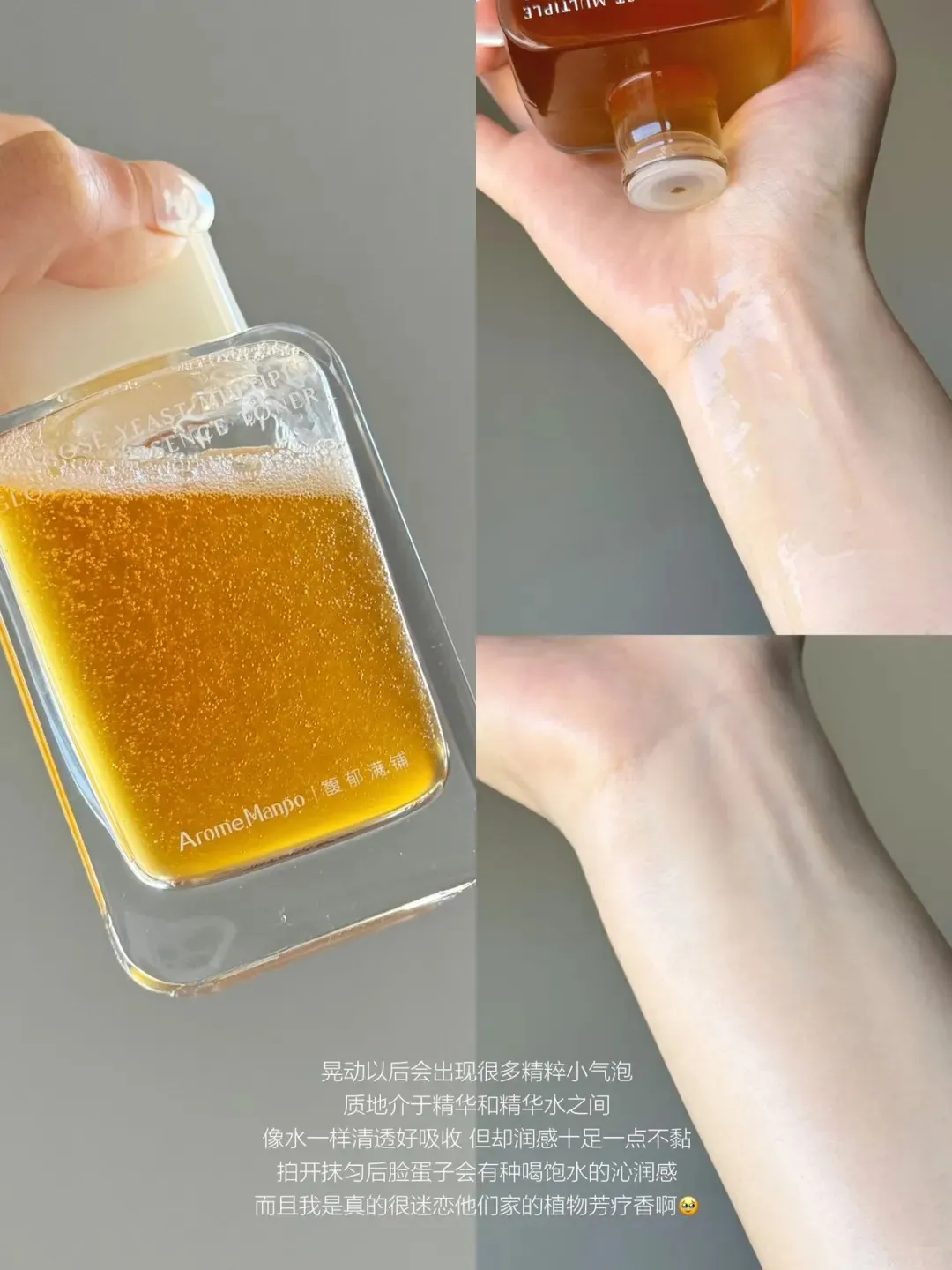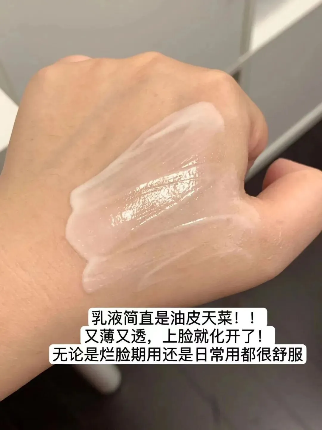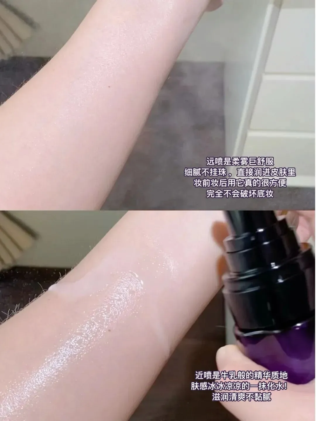 流动性一绝,上脸很清爽~轻拍几下就被皮肤吃进去了,完全不会有黏腻闷肤感,后续叠加乳霜也可。