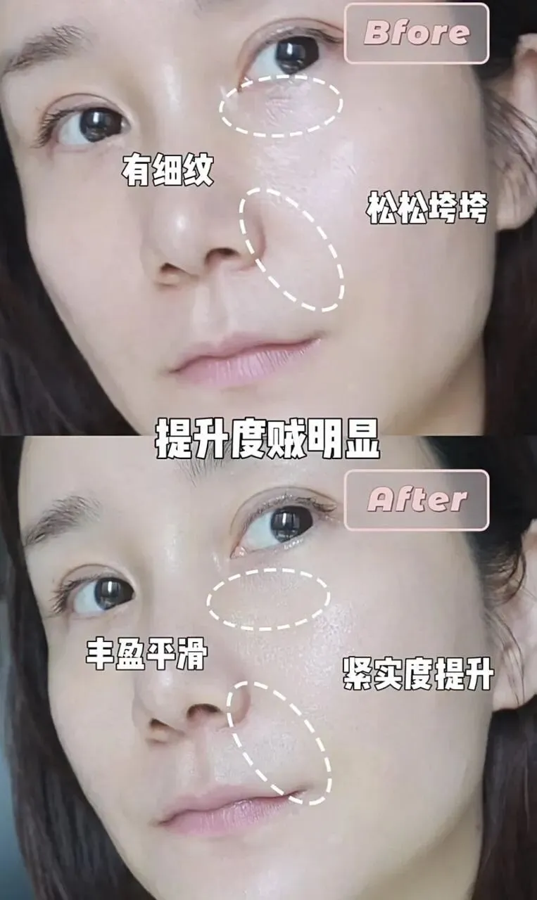 轻松撑起松垮的脸部,干掉细纹,让脸回复饱满紧致。