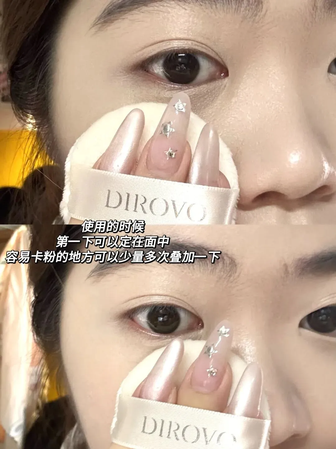 定妆的话建议选它云雾水散粉52%水精华定妆,是那种不卡粉不拔干的雾面妆容,超绝!