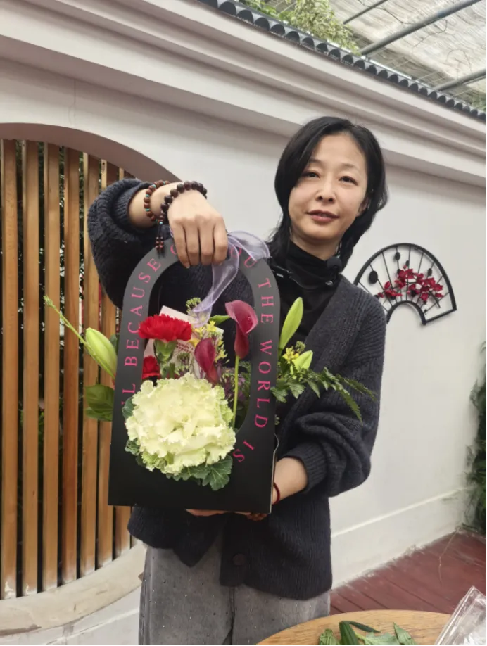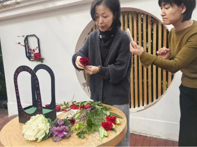 “平时工作忙,难得有机会和同事们一起静下心来插花,今天既是放松,也是送给自己的节日礼物。”正专注调整花束造型的张女士笑着说。