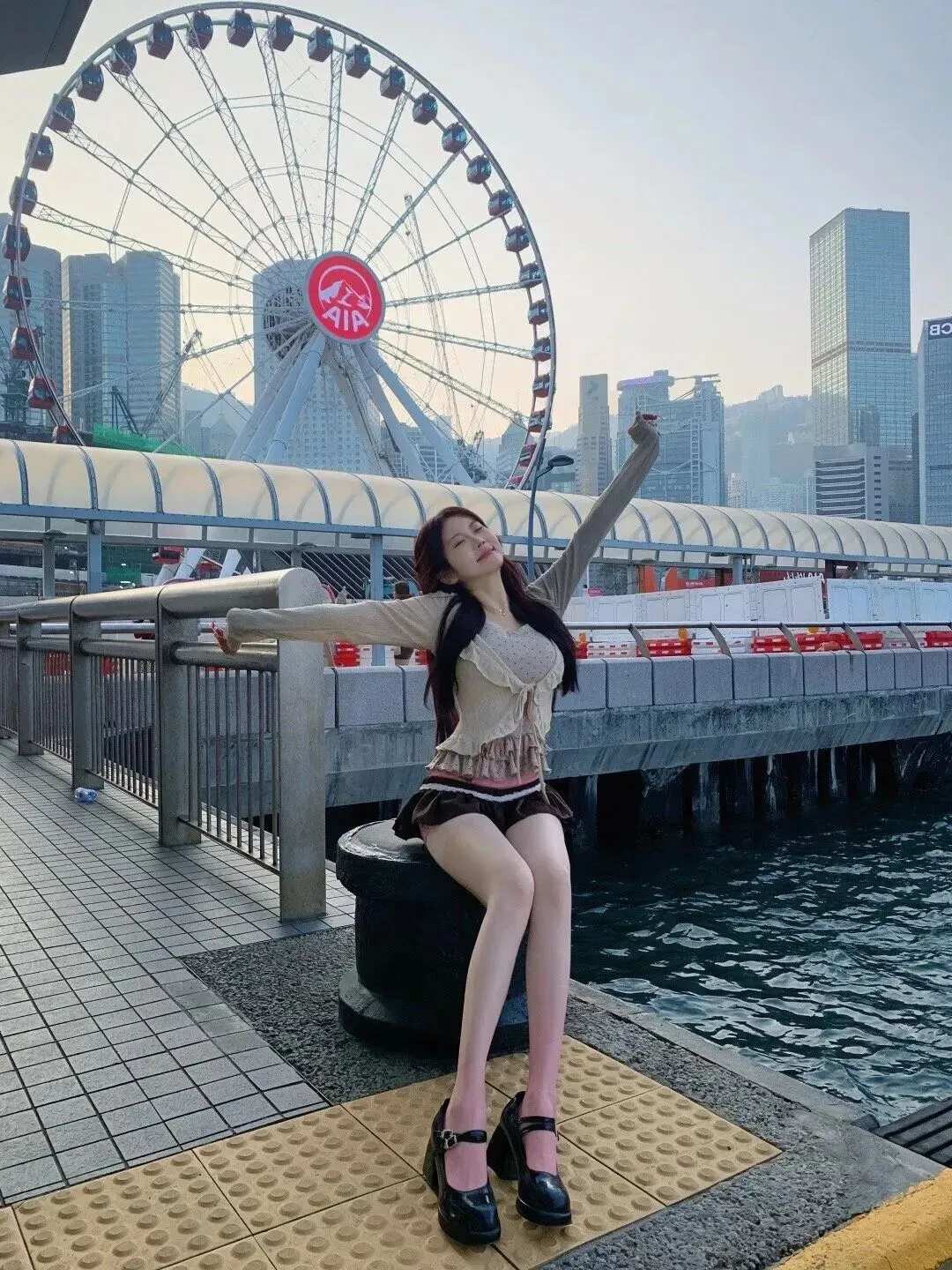 下装的选择更是关键。百褶短裙是甜酷风的标配,深棕色和浅色上衣形成温柔对比,蓬松的裙摆可以遮挡大大的腿部肉肉,对梨形身材来说非常友好。