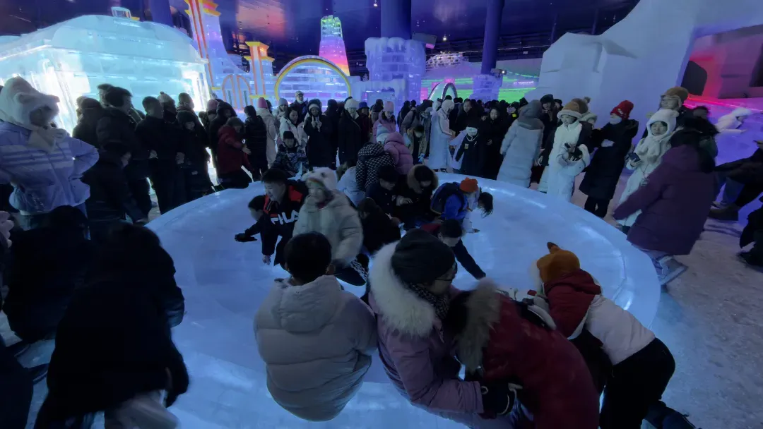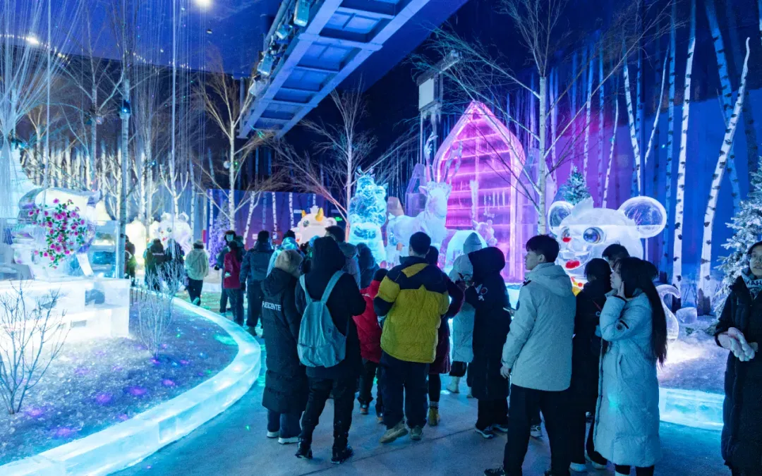 梦幻冰雪馆占地2.38万平方米,冰雕师复刻第二十七届哈尔滨冰雪大世界经典景观,场馆分为秘境·林海雪原等五大主题区域,各有特色。