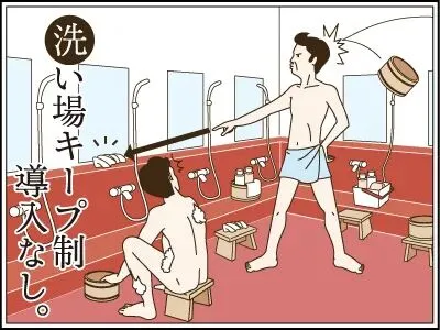 进了澡堂子,打住!你千万别急着跳进池子。看见旁边的一溜小板凳没有,必须先在旁边的小板凳上坐好了,把自己从头到脚刷得一点泥都没有。最奇葩的是,你不能站着冲水,因为日本人怕水花溅到别人身上。