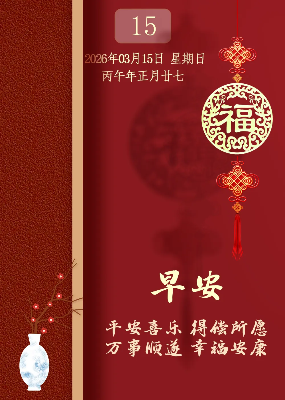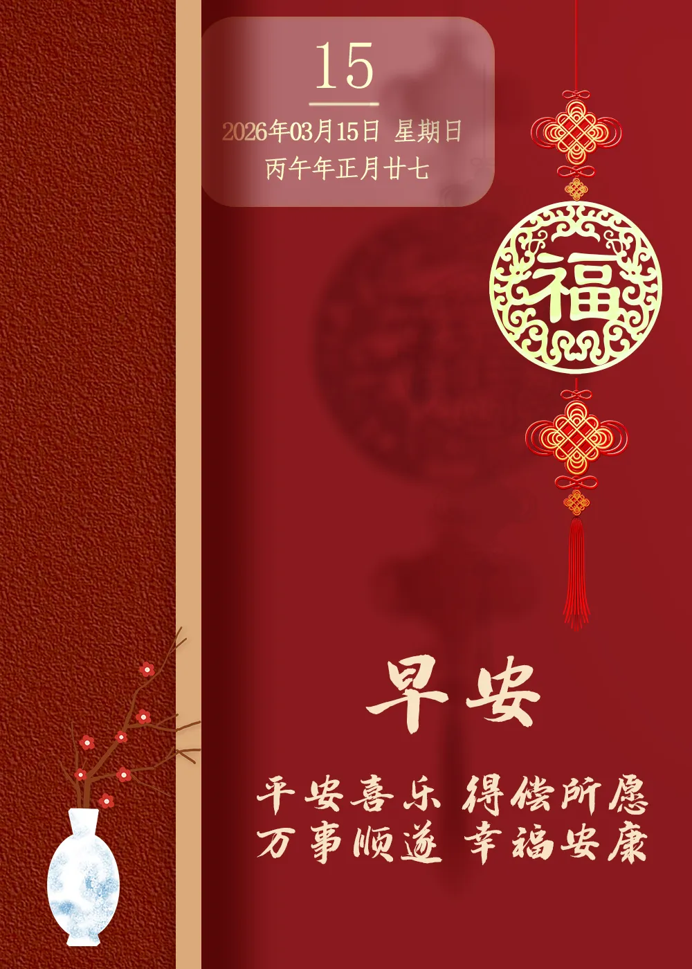 当前位置:首页>美女资讯>2026年3月15日 早安问候图片