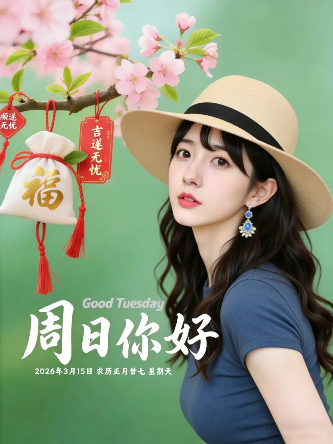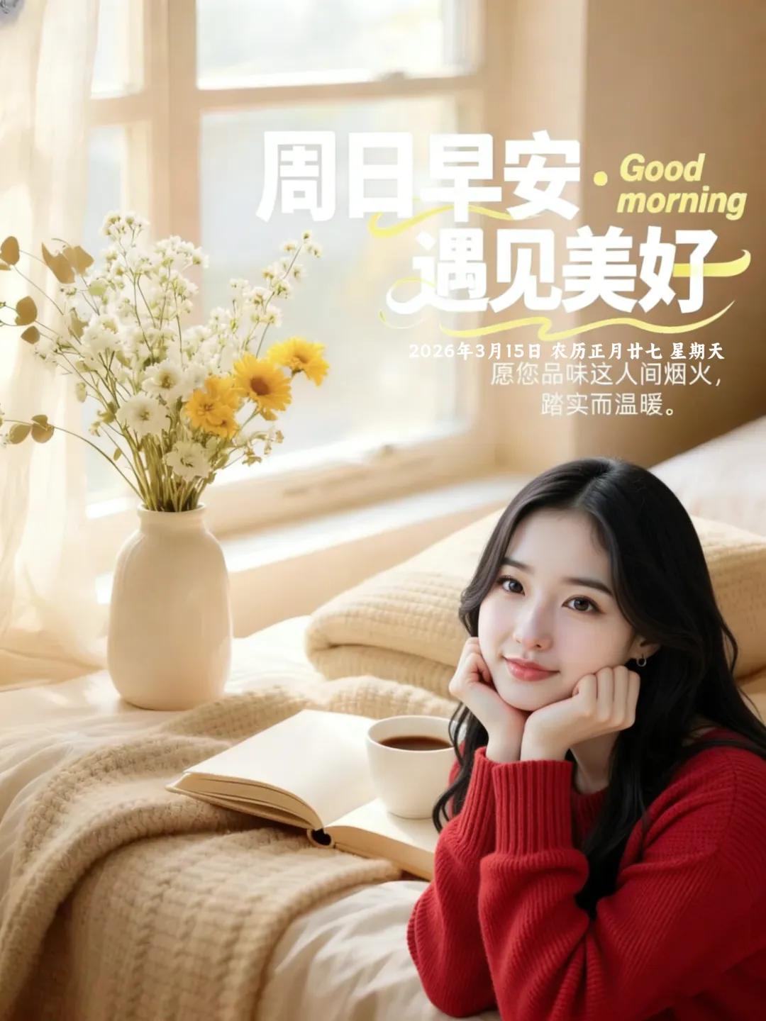 当前位置:首页>美女资讯>8张 3月15日-周日祝福图片,正月廿七 星期天早安图片