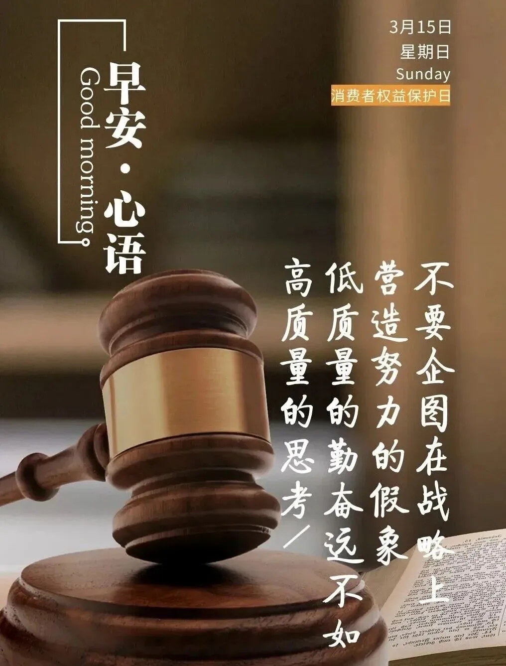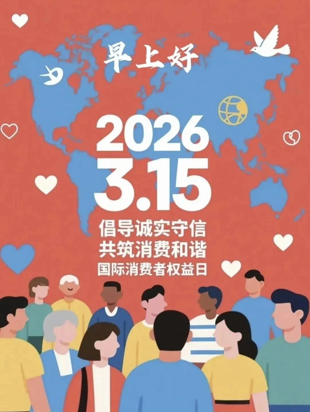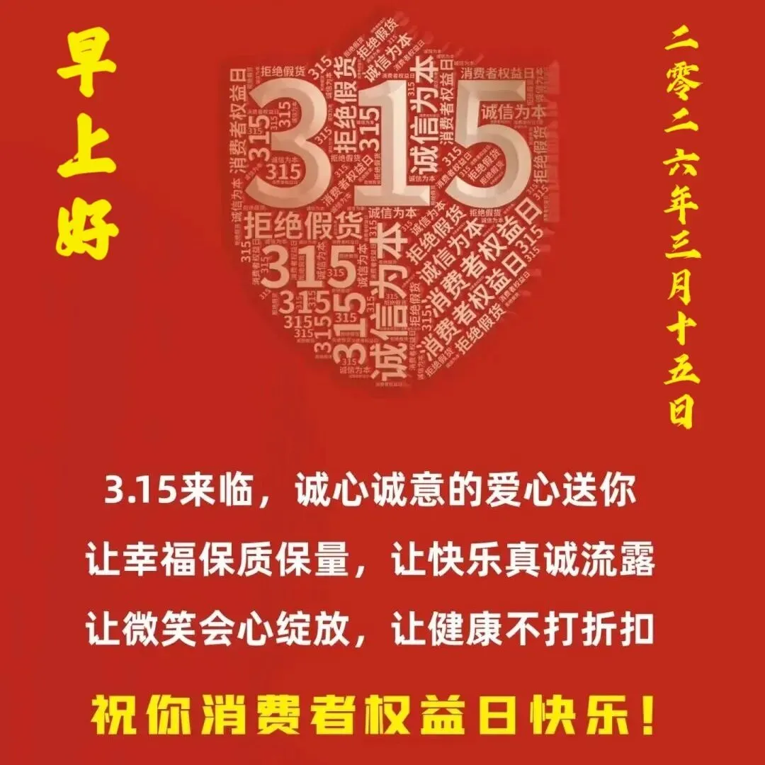 早安!今天是 315 国际消费者权益日,愿诚信相伴,品质同行,生活不踩坑,事事都顺心。