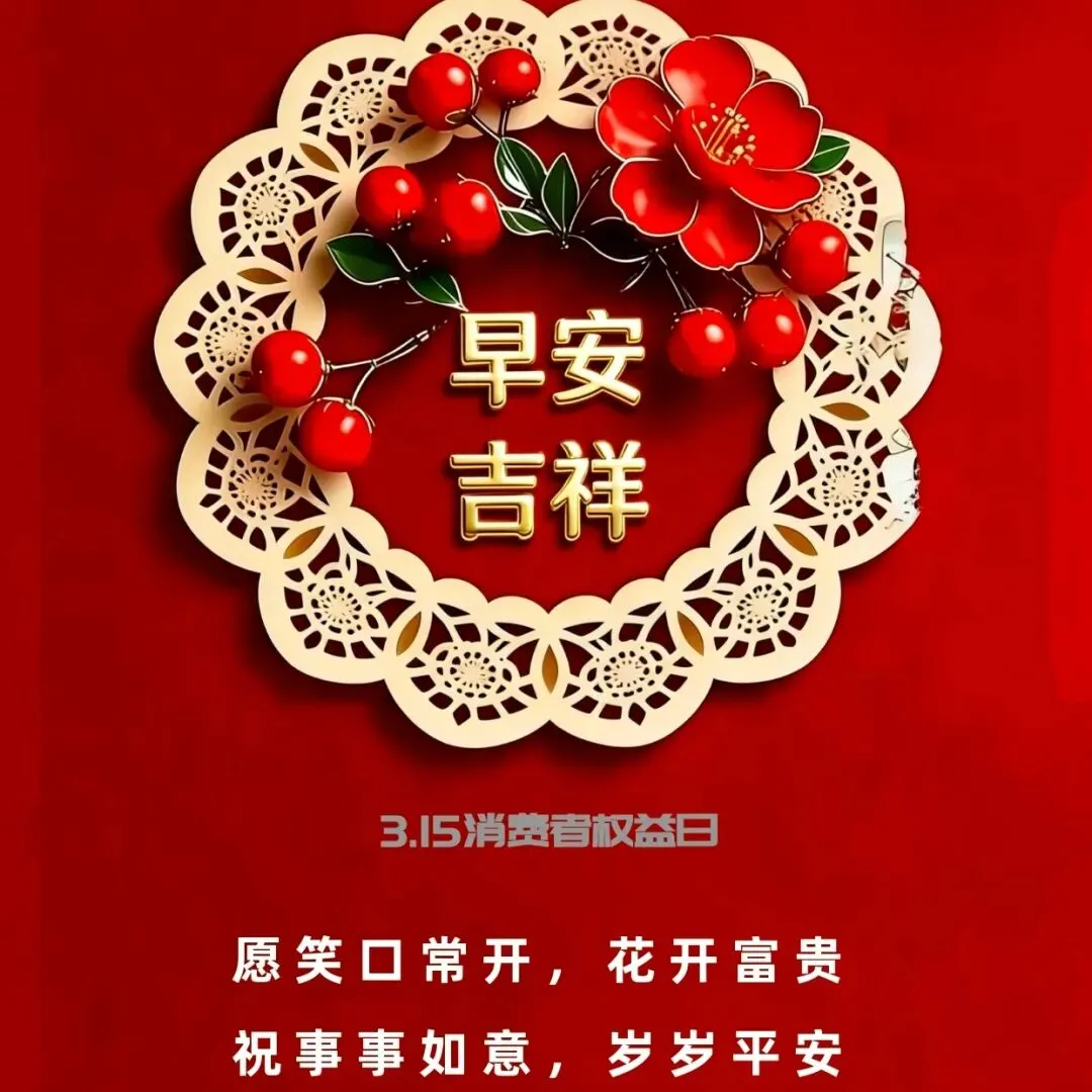 早安!3・15 消费者权益日,愿你买得放心、用得安心、吃得舒心,生活处处有保障,日子一天比一天更舒心。