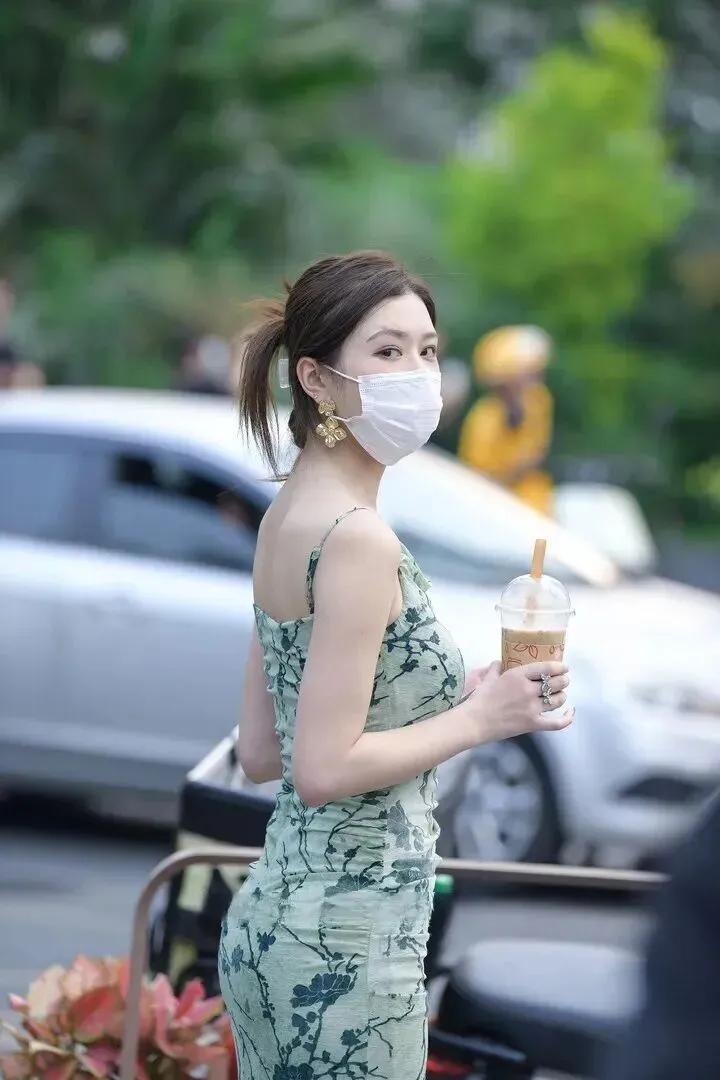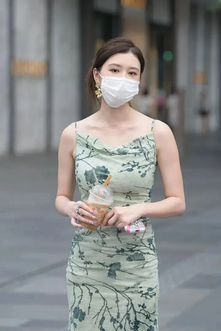 配饰选择很重要。锁骨链、纤细手链使精致感提高,美甲选淡色系会更加清爽。鞋子可以根据场合的需要选择平底凉鞋、细高跟。哪怕戴口罩,一双笑眼也能传递温柔氛围。