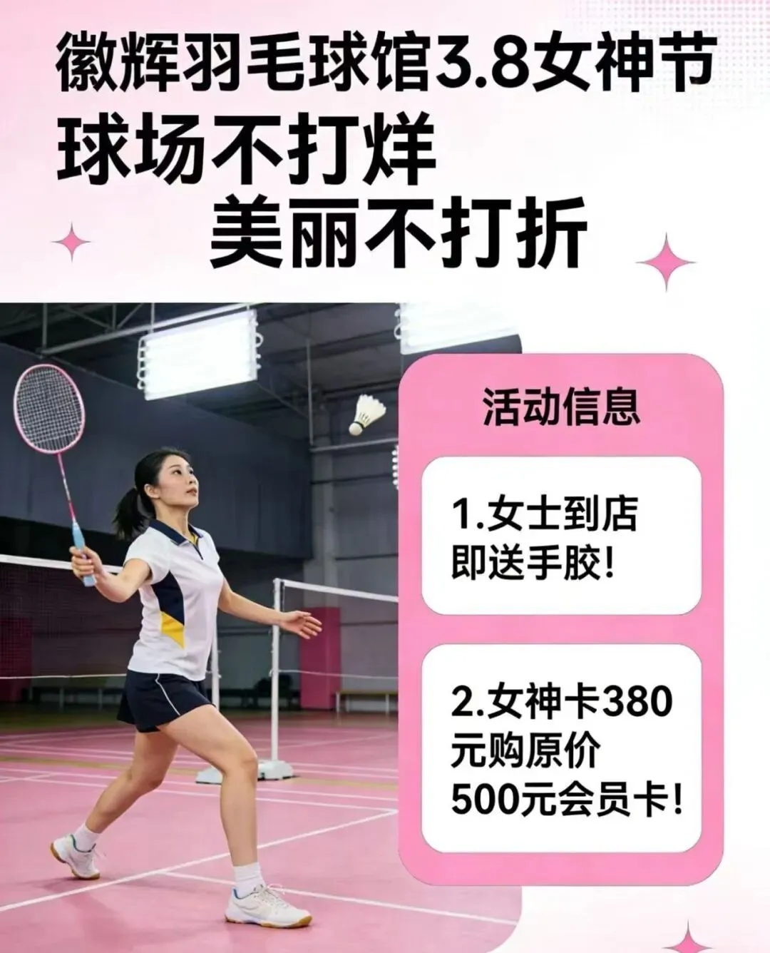 38女神节福利倒计时!¥380抢¥500羽毛球女神卡最后一天!