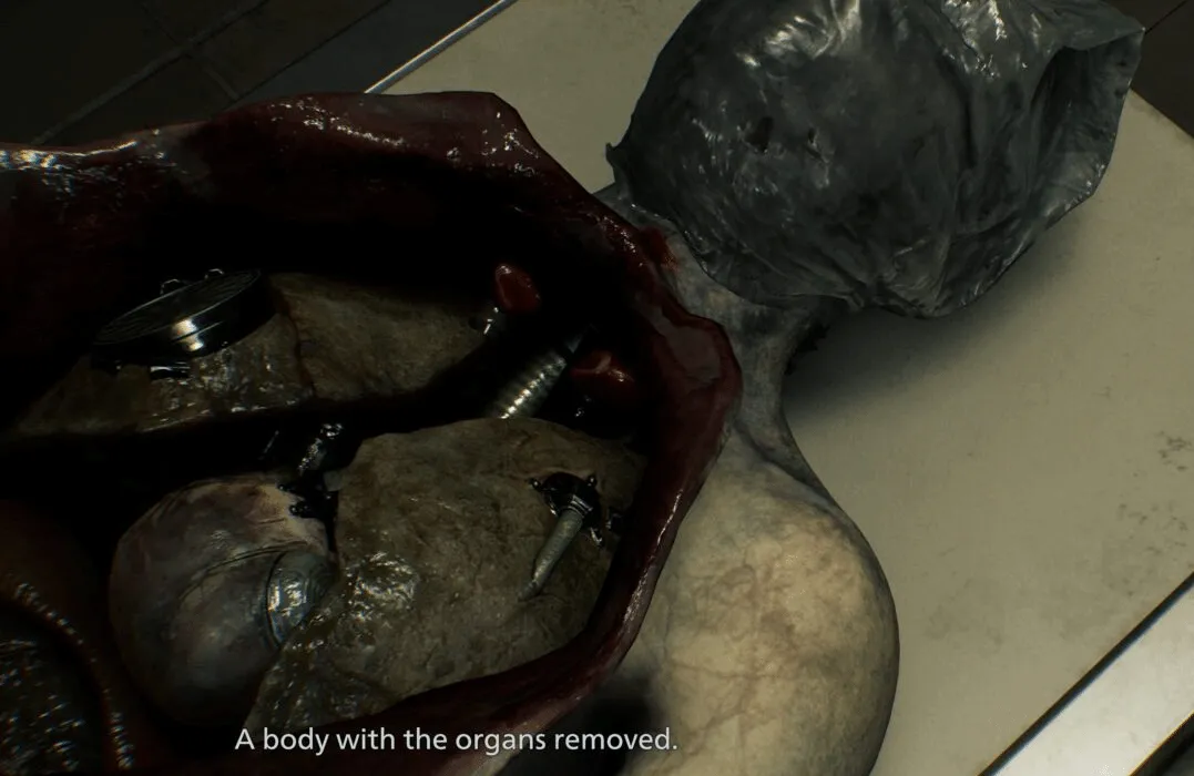 日前,有博主晒出了日版游戏的截图,显示在格蕾丝疗养院关卡中,一具尸体的器官被“清空”,玩家需要寻找器官并取下其胳膊上的腕带。