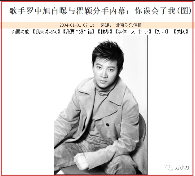 1999年,罗中旭在韩国和一位合作的女明星传出了绯闻,被“绿”的瞿颖很伤心,和他发生了激烈争吵,不欢而散。