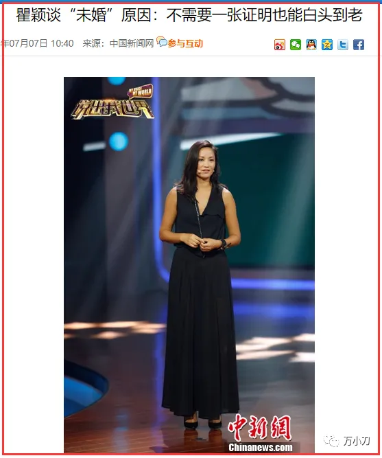 2016年7月,45岁的瞿颖做客叶一茜主持的节目,面对她“逼婚”,瞿颖连连应和,“今年就结”。