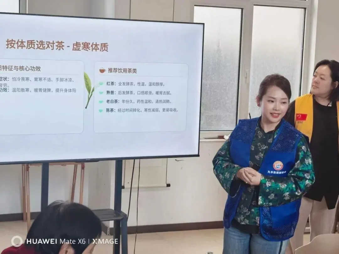 活动现场暖意融融、茶香四溢,特别邀请简小叶茶学堂老师现场指导。老师为大家分享女性茶养生知识,细致讲解不同茶饮的养生功效与日常饮茶禁忌,大家在轻松的氛围中收获实用的养生技巧。